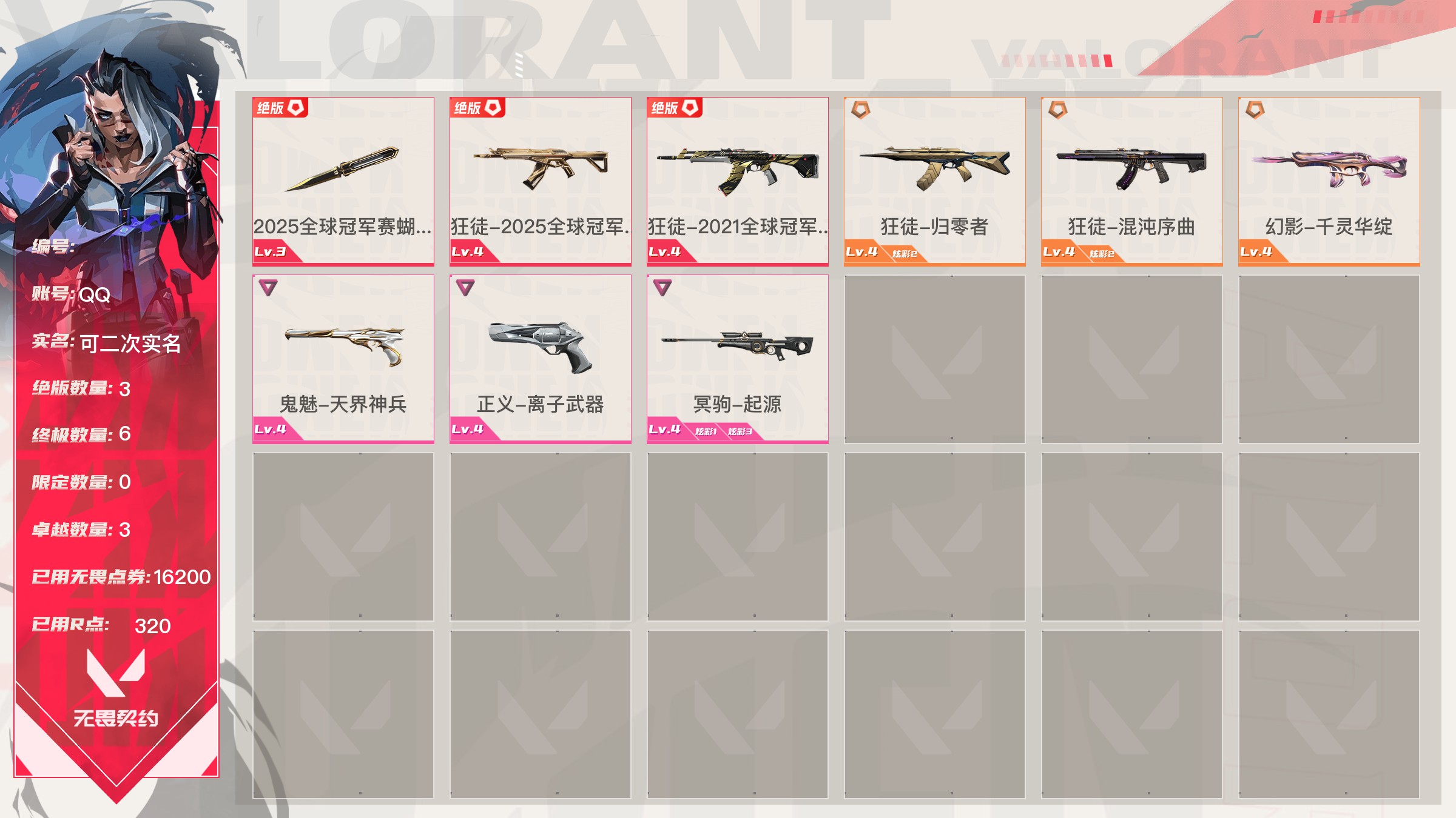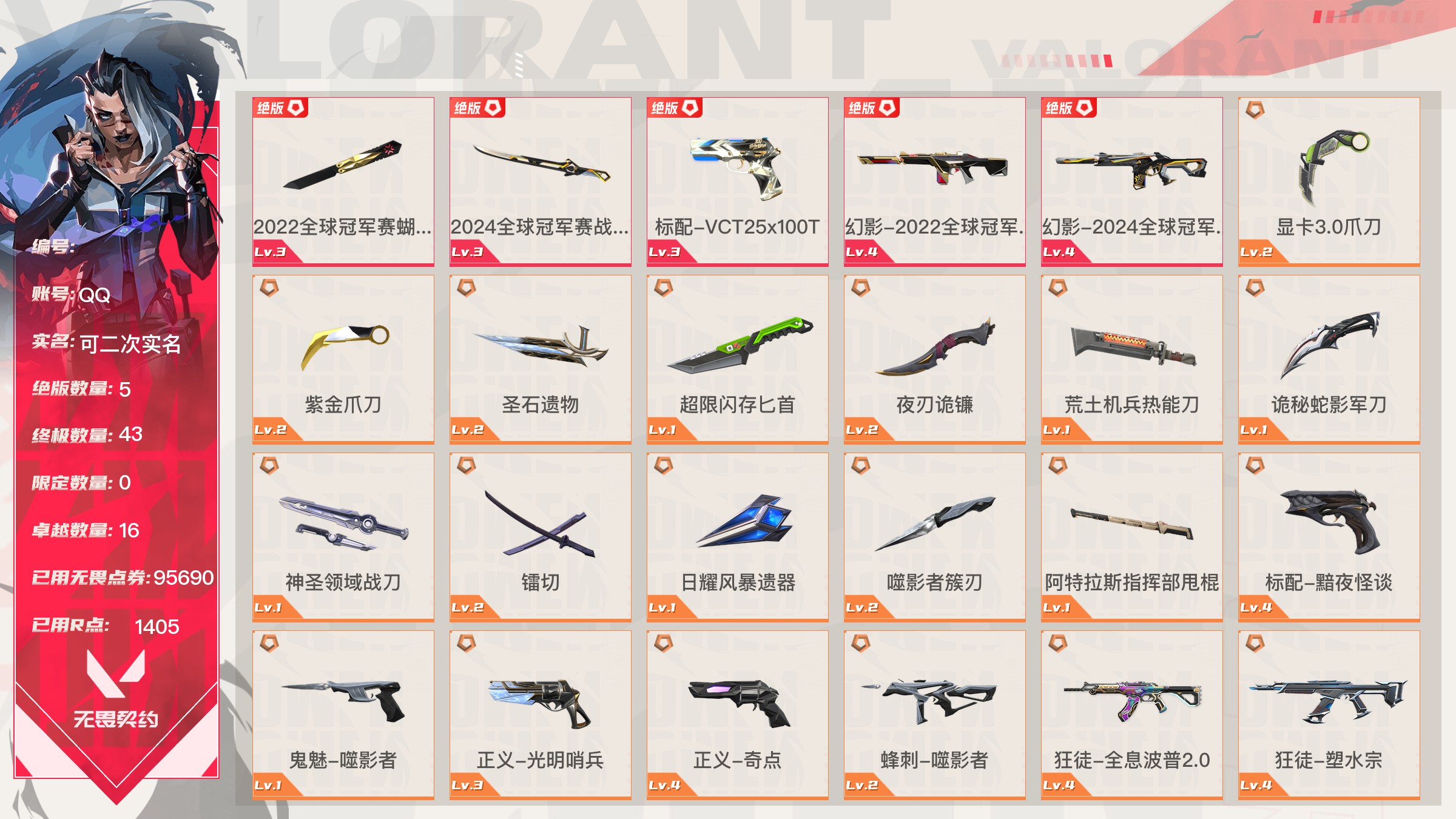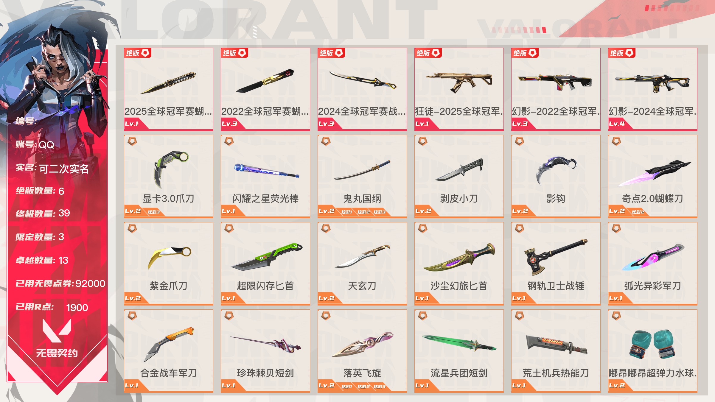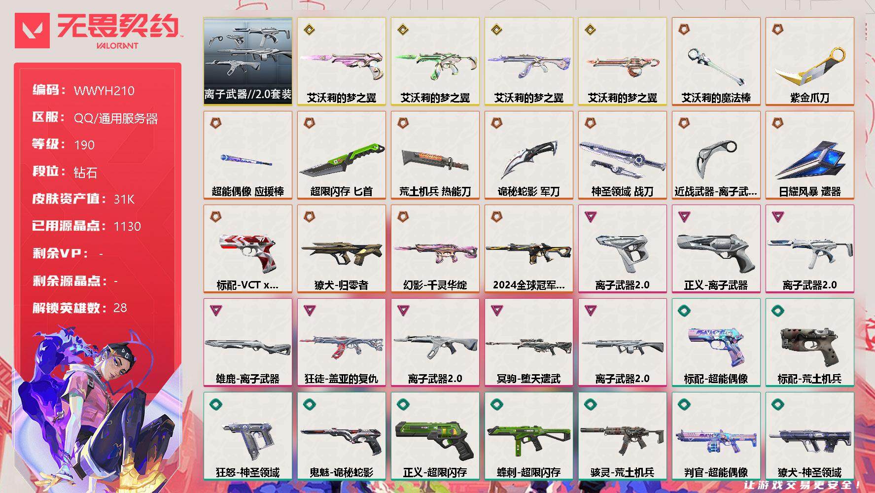 无畏契约【端游】终极*13/传奇*4/卓越*8/皮肤*99/等级*190/段位:钻石