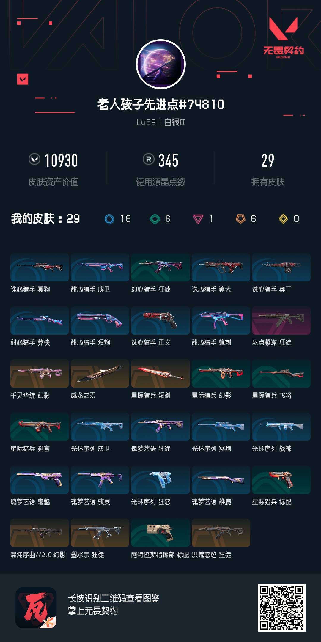 无畏契约【端游】Lv78|白银II, 刀皮数量2,枪皮数量21(绝版2限定5
