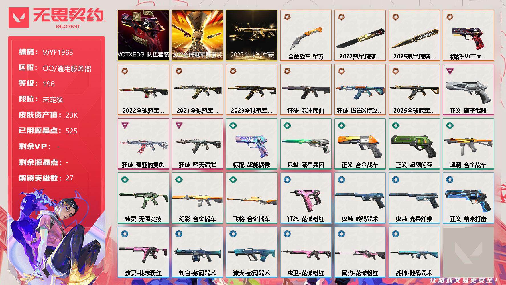 无畏契约【端游】终极*10/卓越*3/皮肤*34/等级*196/段位:未定级/