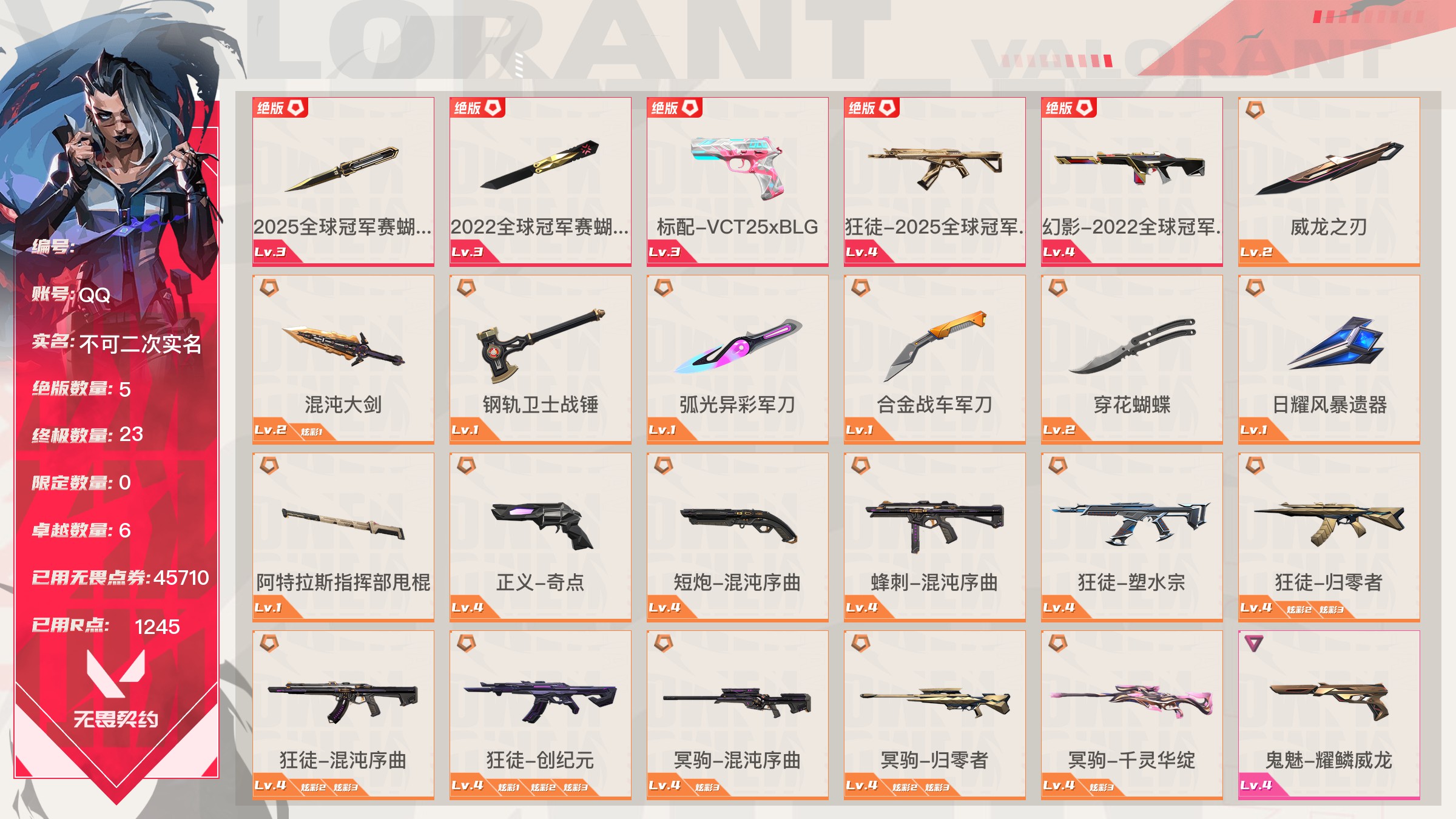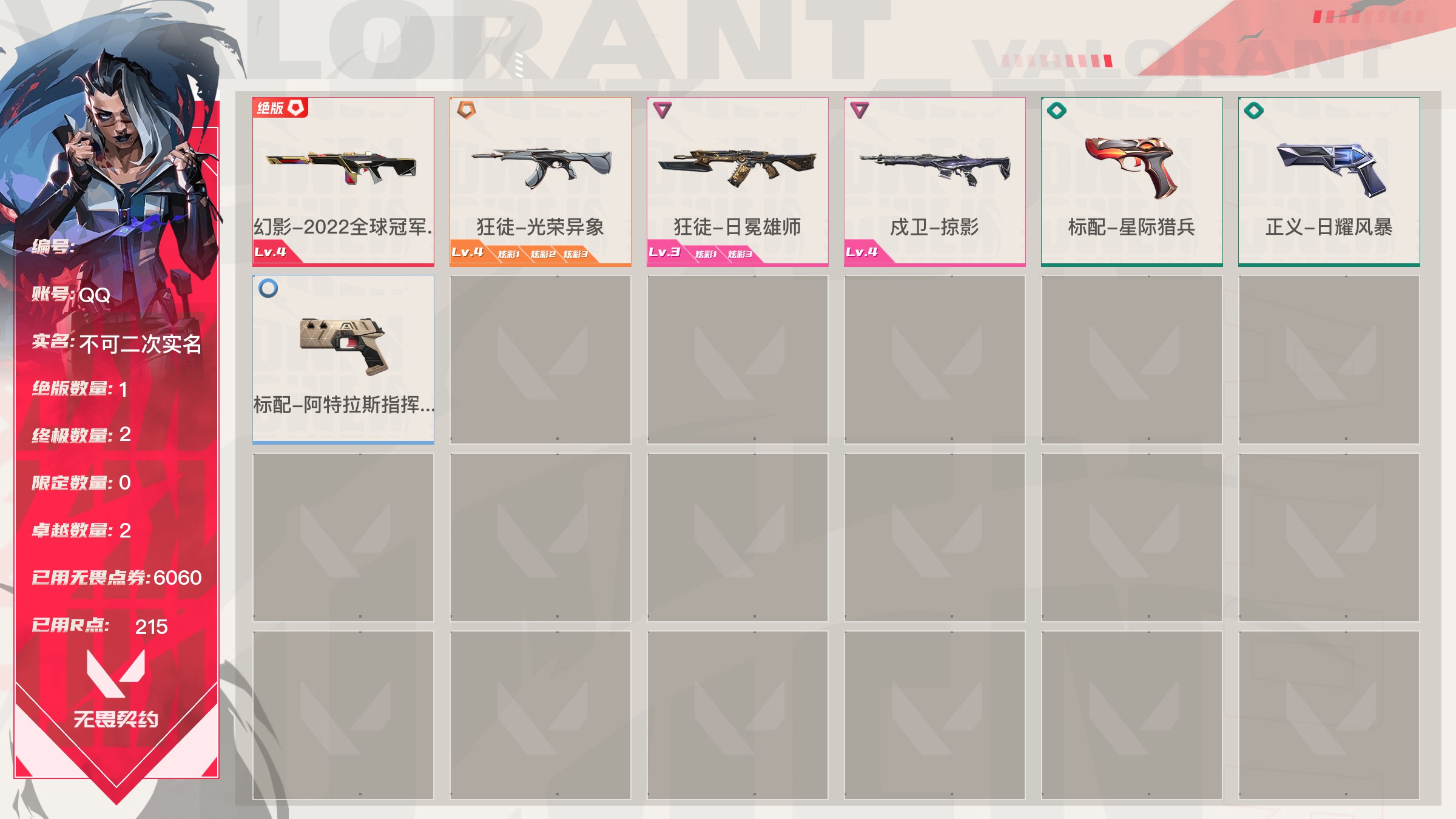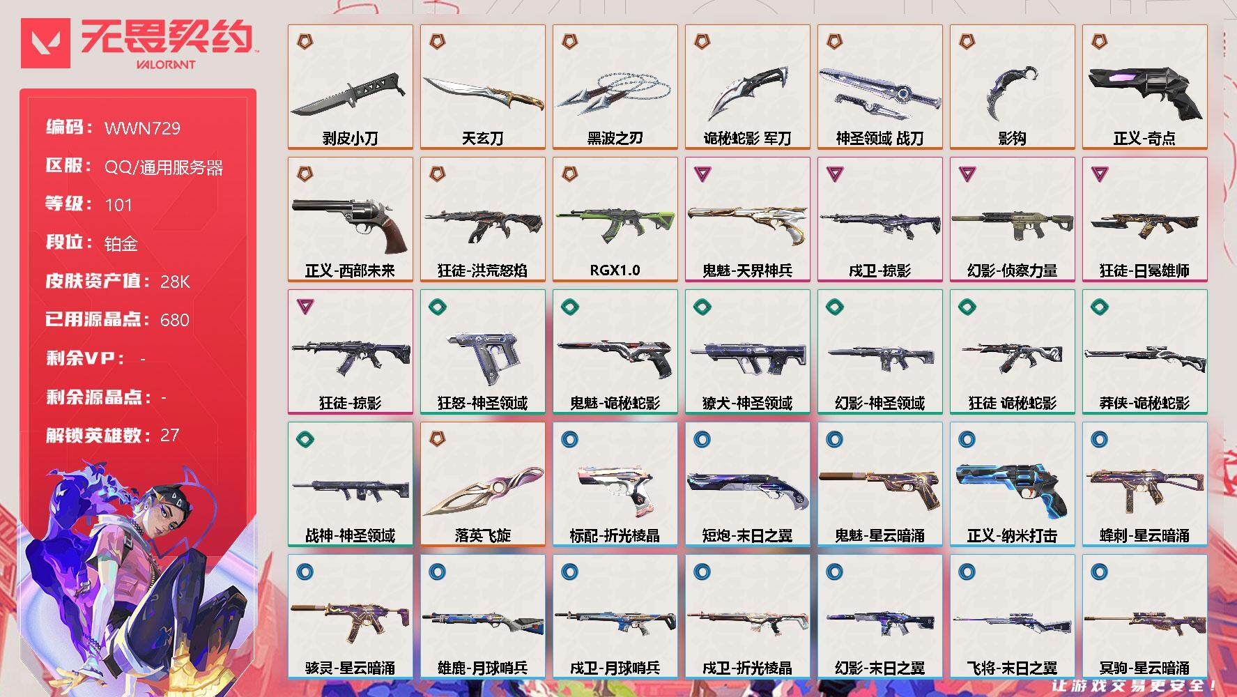 无畏契约【端游】终极*11/卓越*5/皮肤*48/等级*101/段位:铂金/