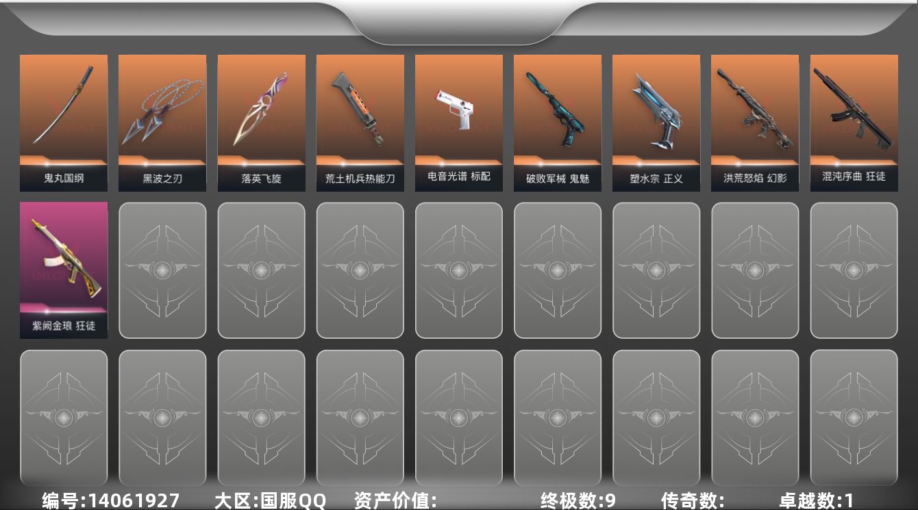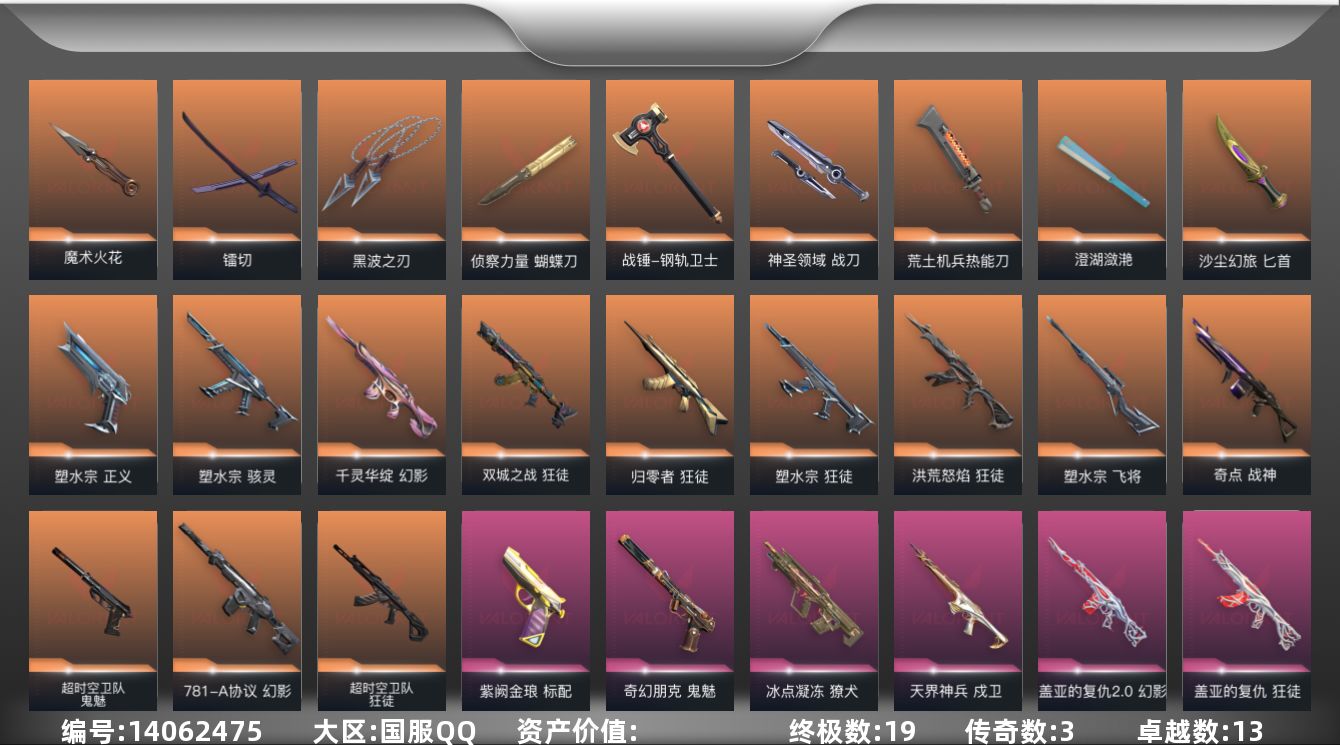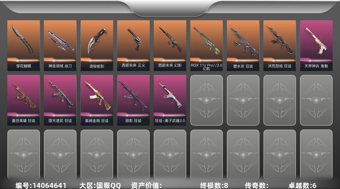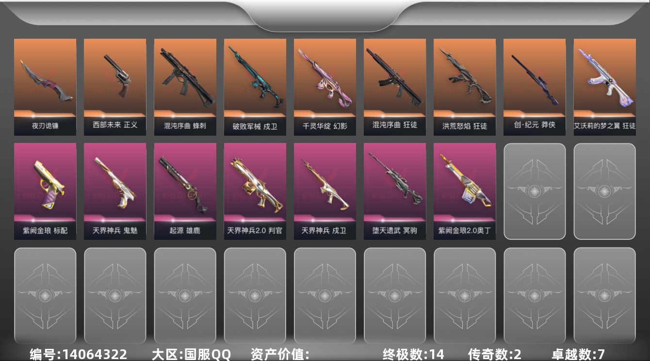 无畏契约【安卓QQ】皮肤价值29010,15橙皮,1金皮,3紫皮