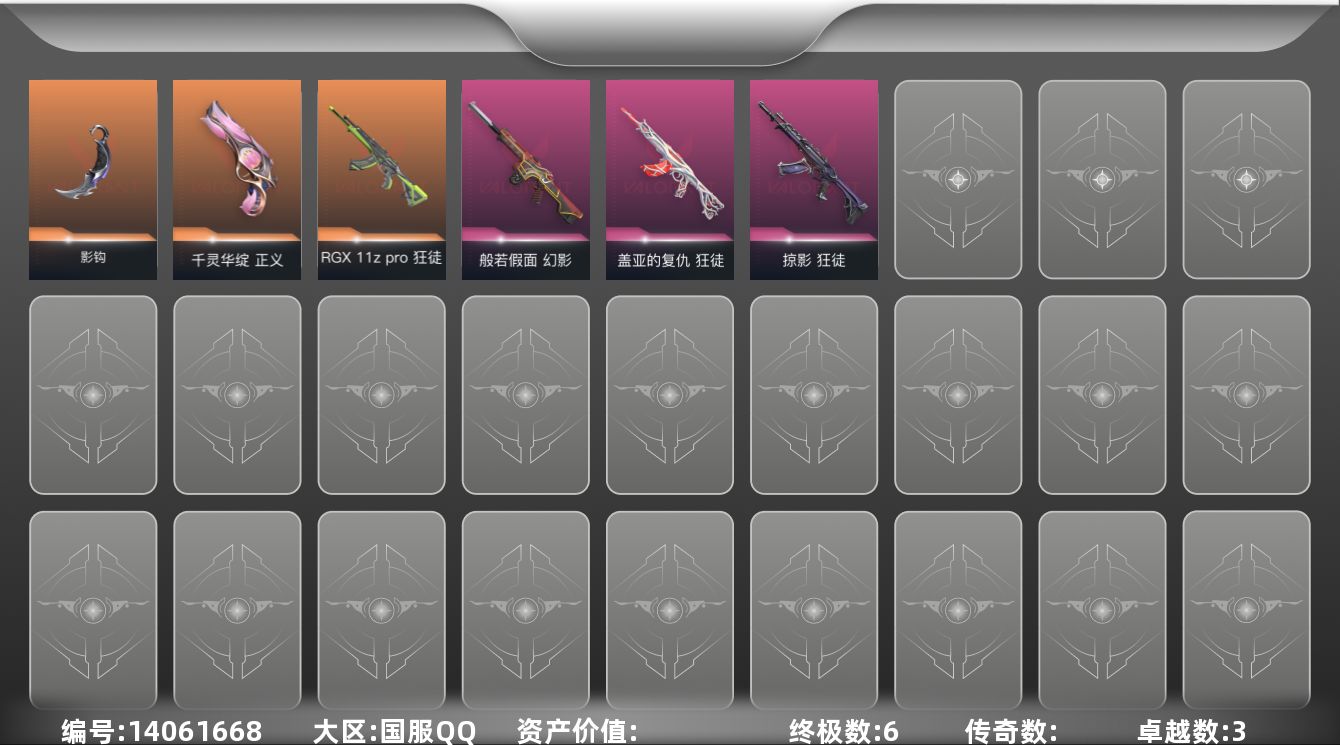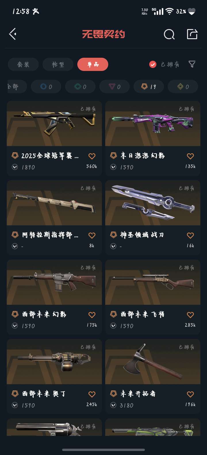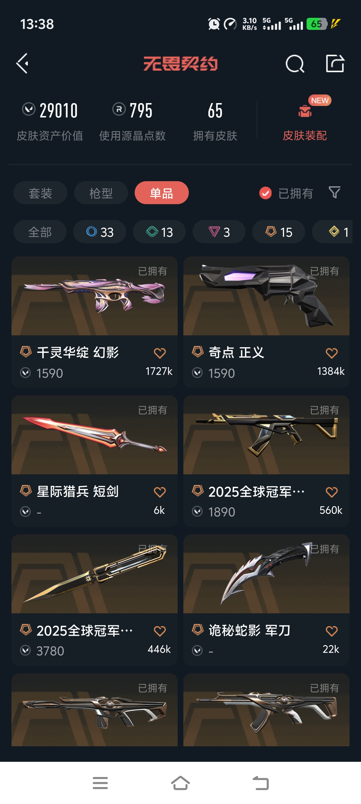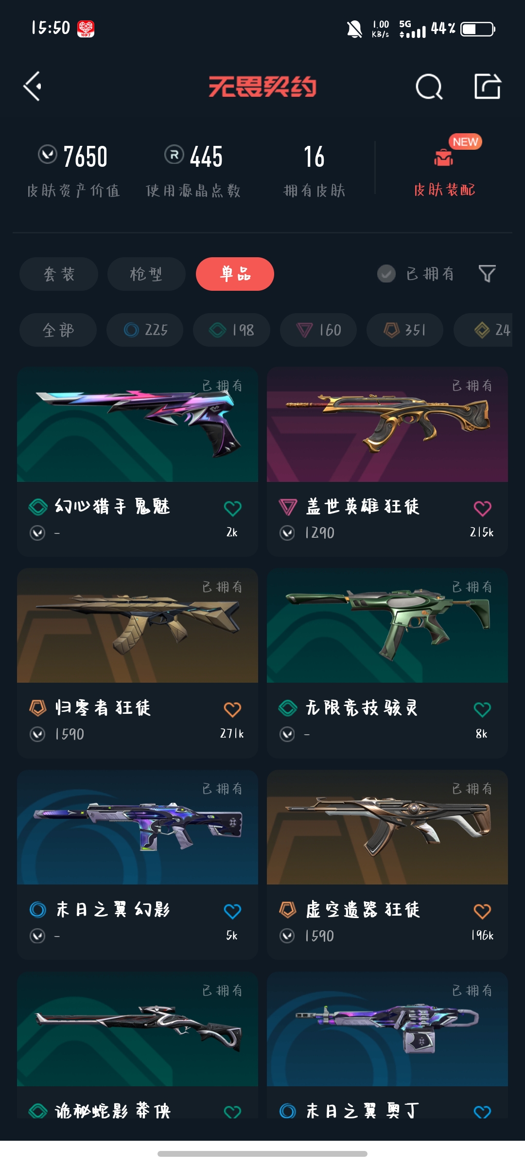 无畏契约【安卓QQ】皮肤价值29010,15橙皮,1金皮,3紫皮