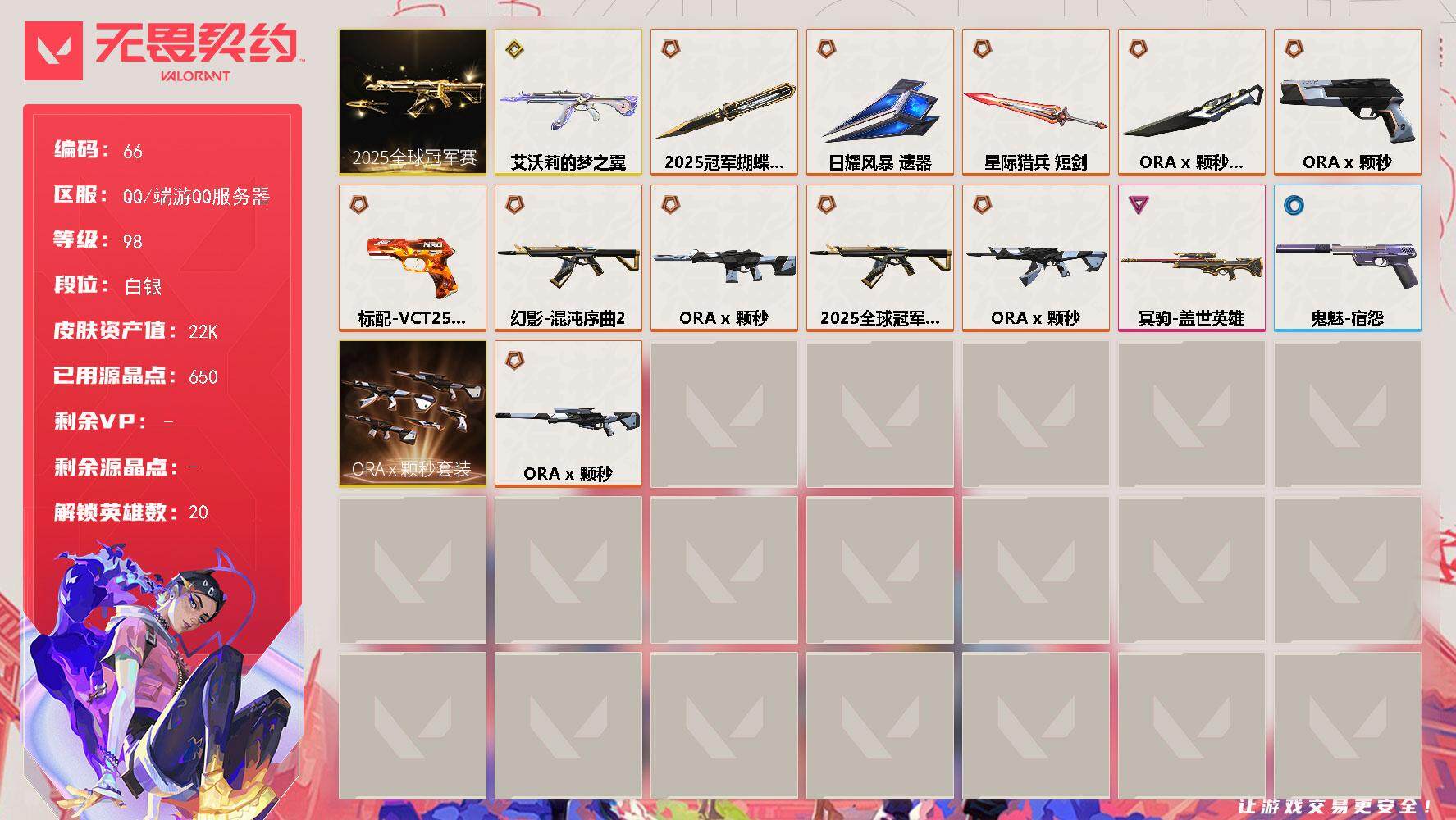 无畏契约【端游】w32,ORA颗秒2025全球冠军赛全套,5黄皮艾沃莉的梦之翼狂徒8橙皮,碎心