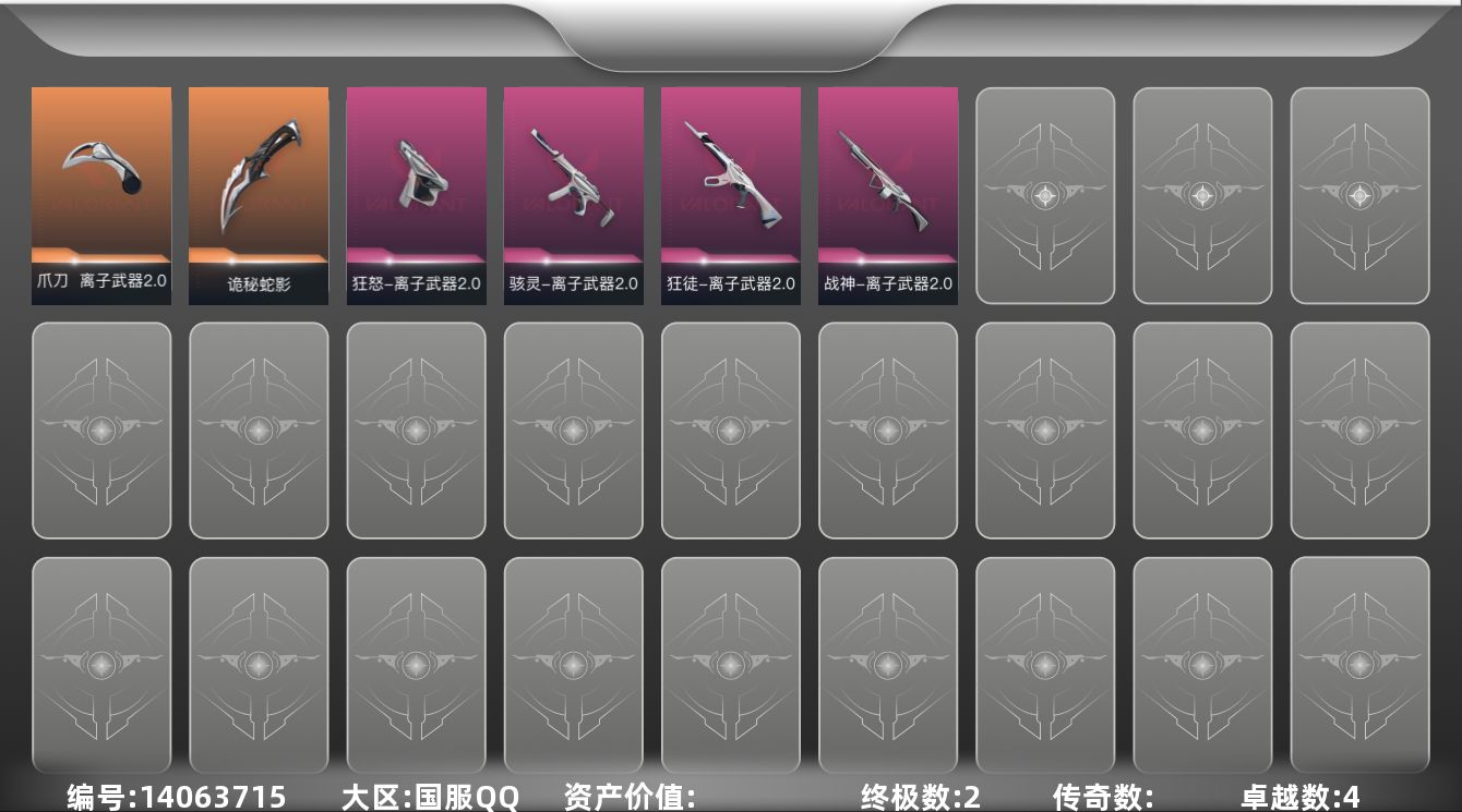 无畏契约【端游】卓越*2/皮肤*4/等级*65/段位:白银