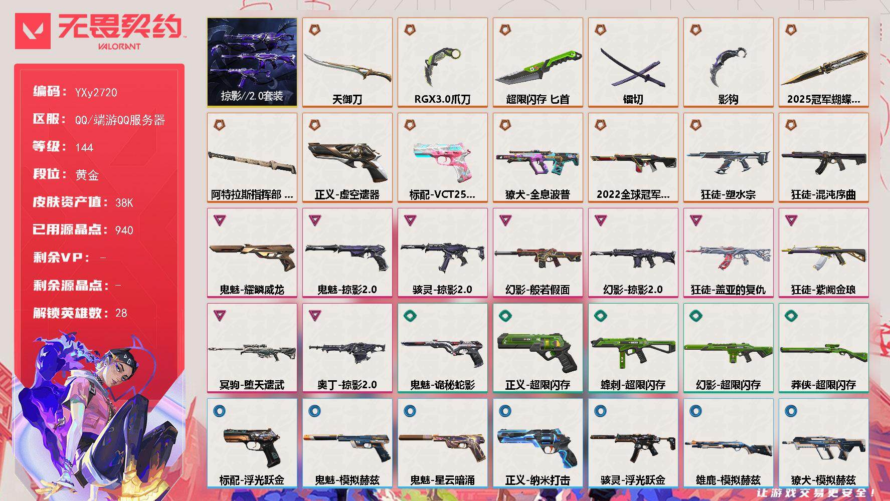 无畏契约【端游】【9k库存小号掠夺爪刀.25冠军.多弥尔.侦查.离子正义】YXy2748【无二