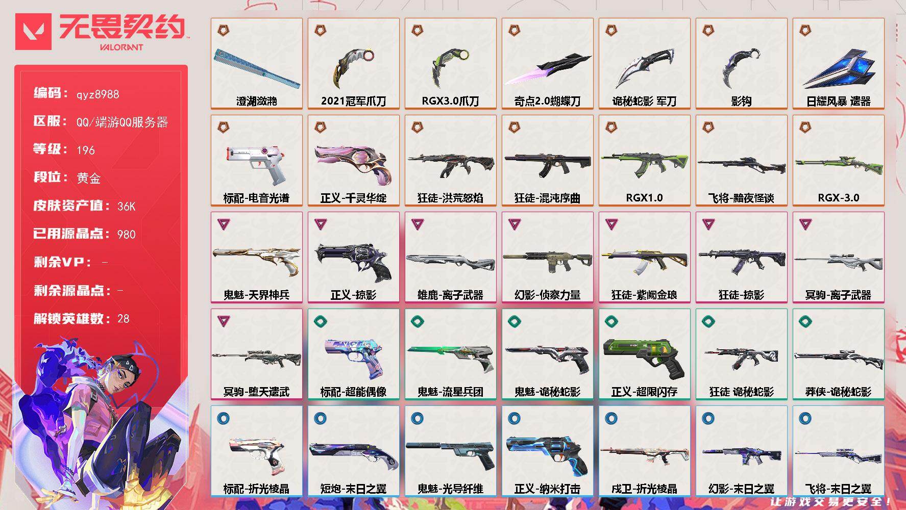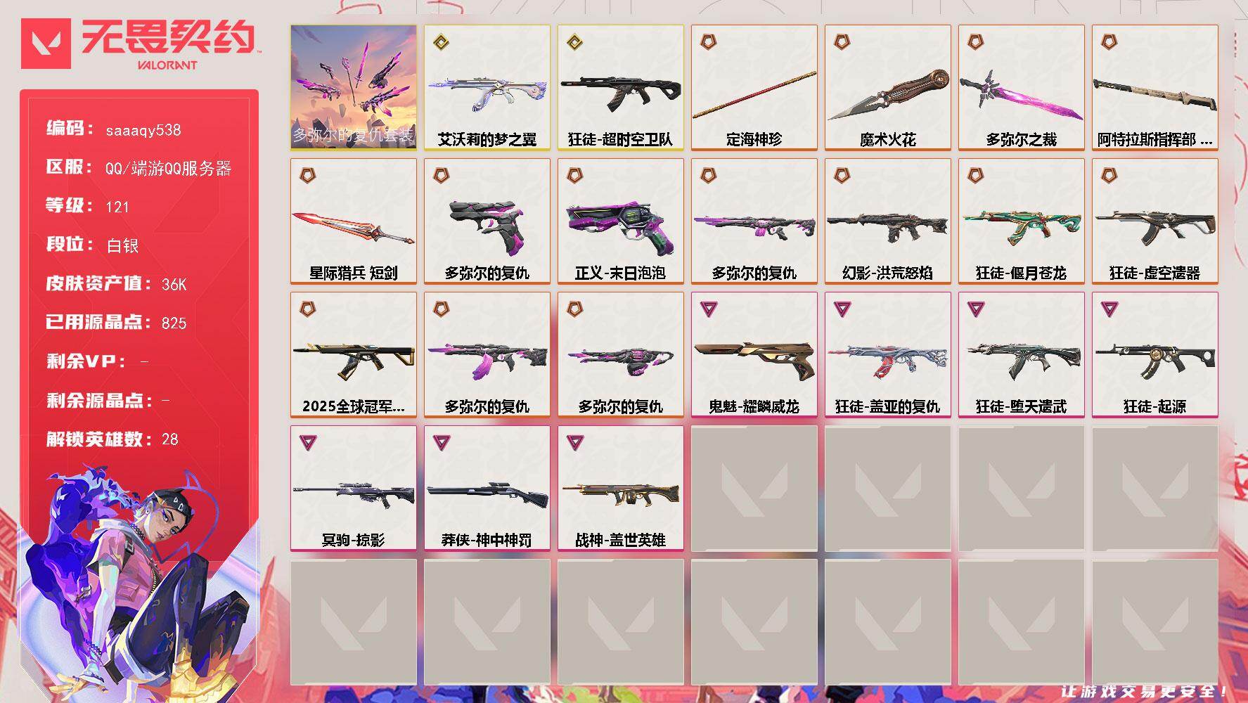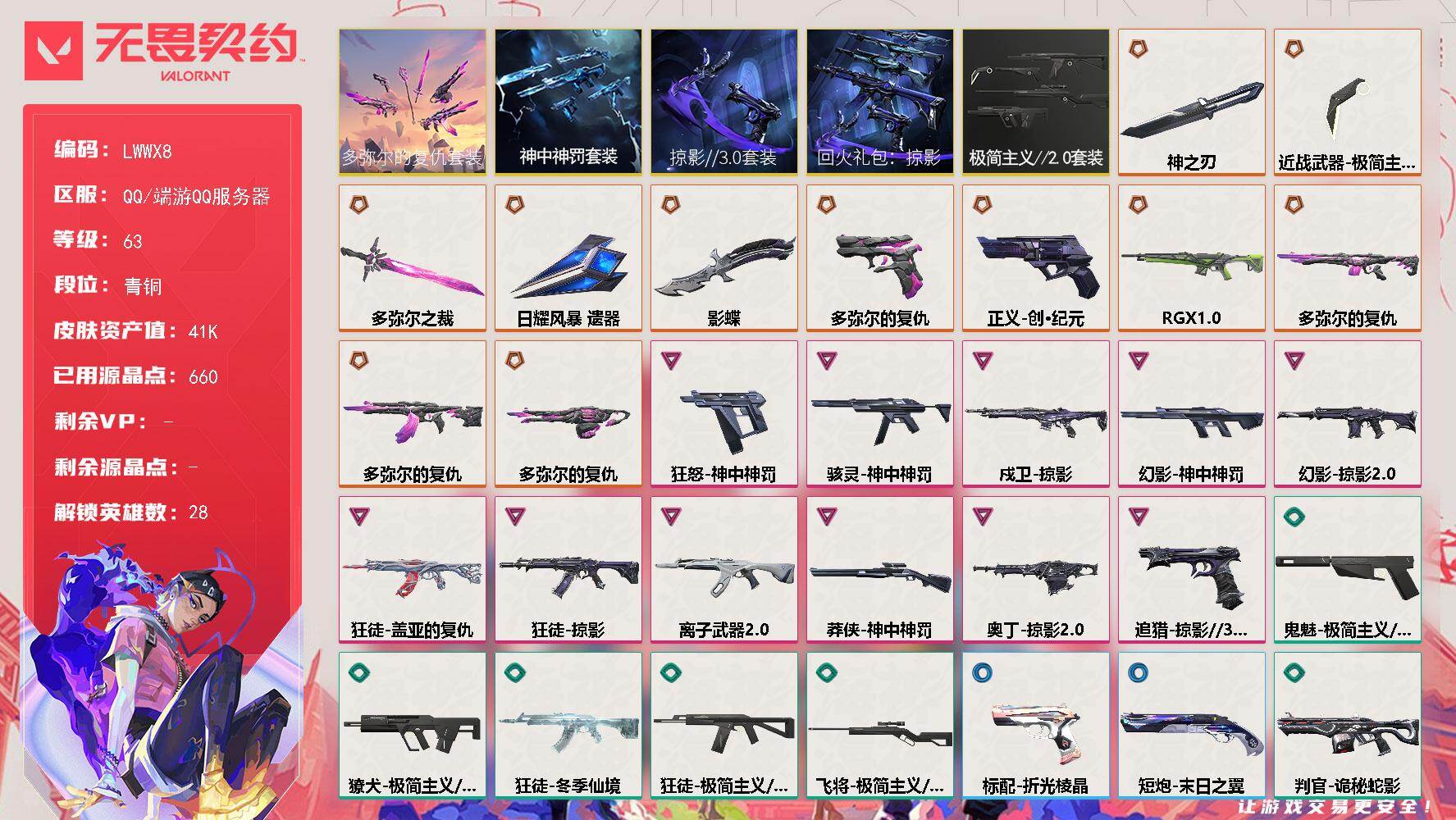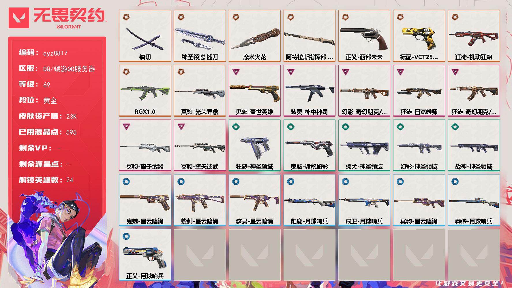 无畏契约账号 25冠军套 侦查和假面m4 流脓ak 掠影正义