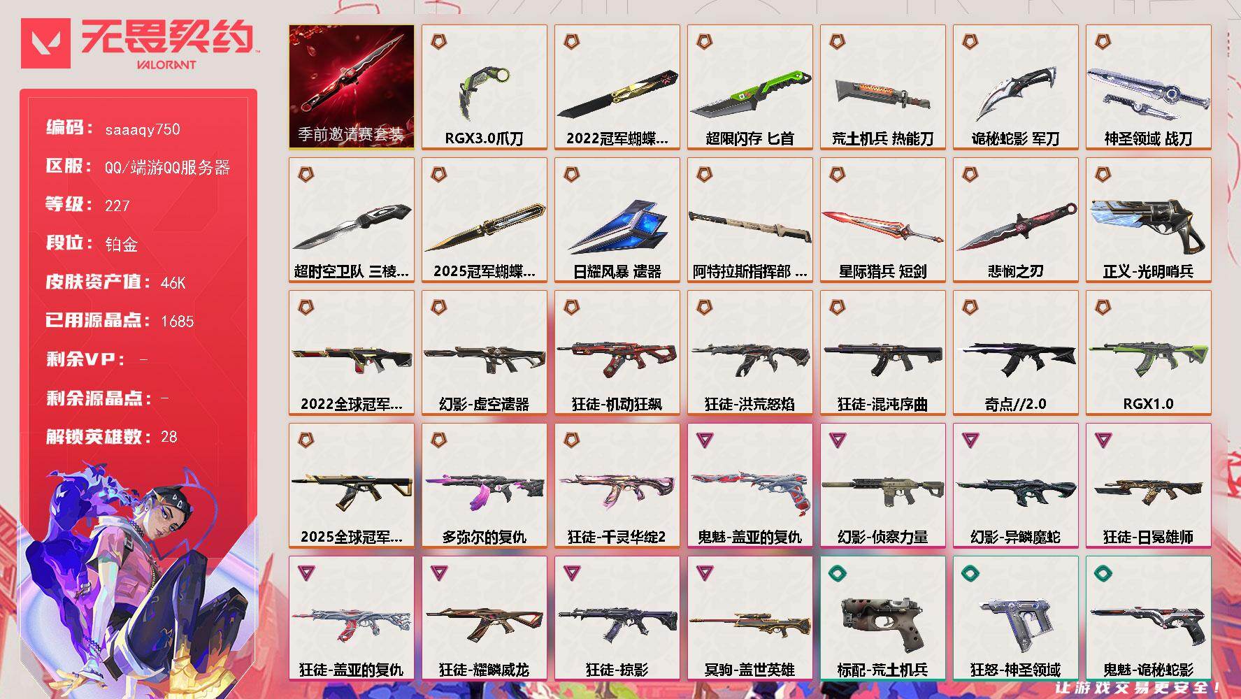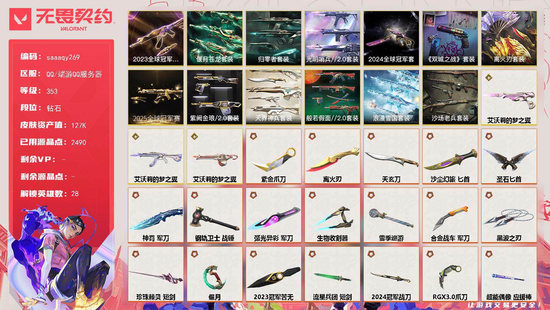 皮肤价值26630 25全球冠军套 游戏等级267-段位:铂金