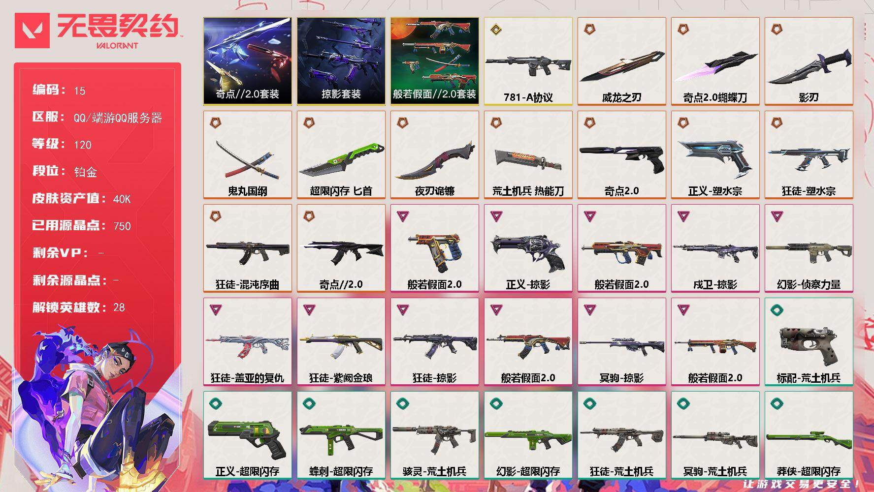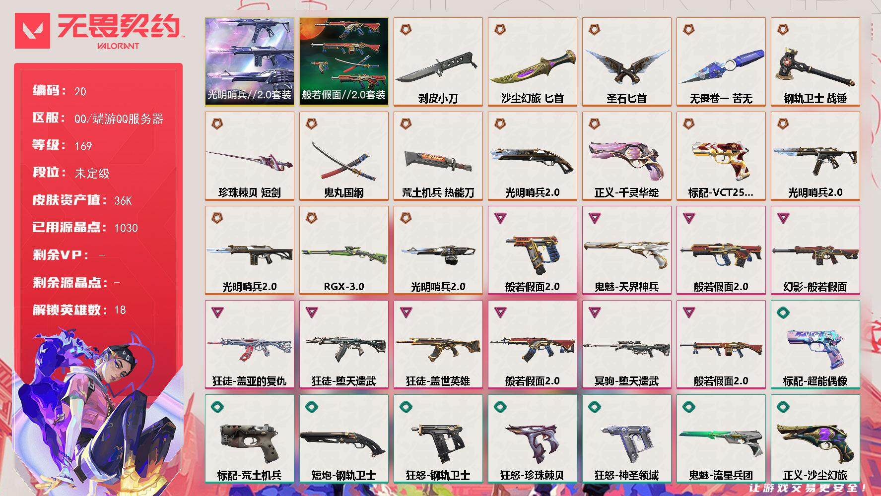 皮肤资产价值36150 15终极-10卓越 光明哨兵2.0套装 般若假面2.0狂徒