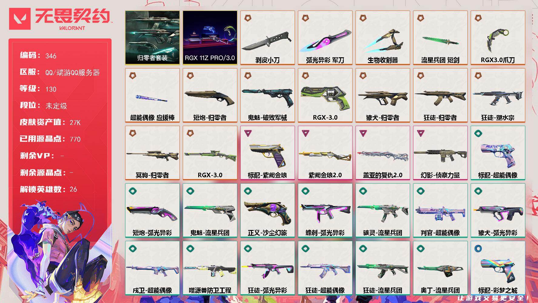 【WWX1215】终极*9/传奇*4/卓越*4/皮肤*41/等级*92/段位: