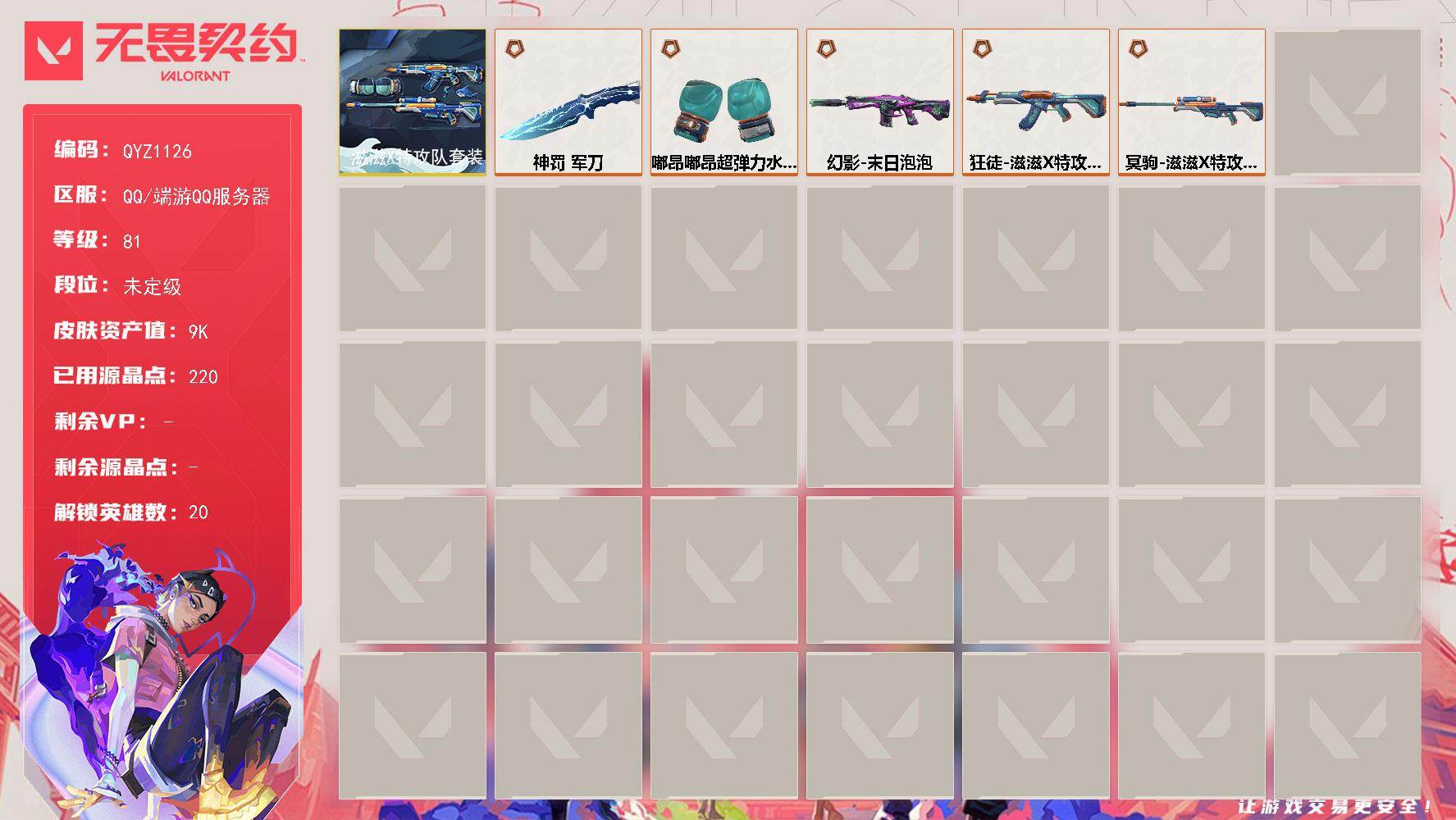 终极*5/皮肤*6/等级*81/段位:未定级/滋滋X特攻队套装/炼狱/