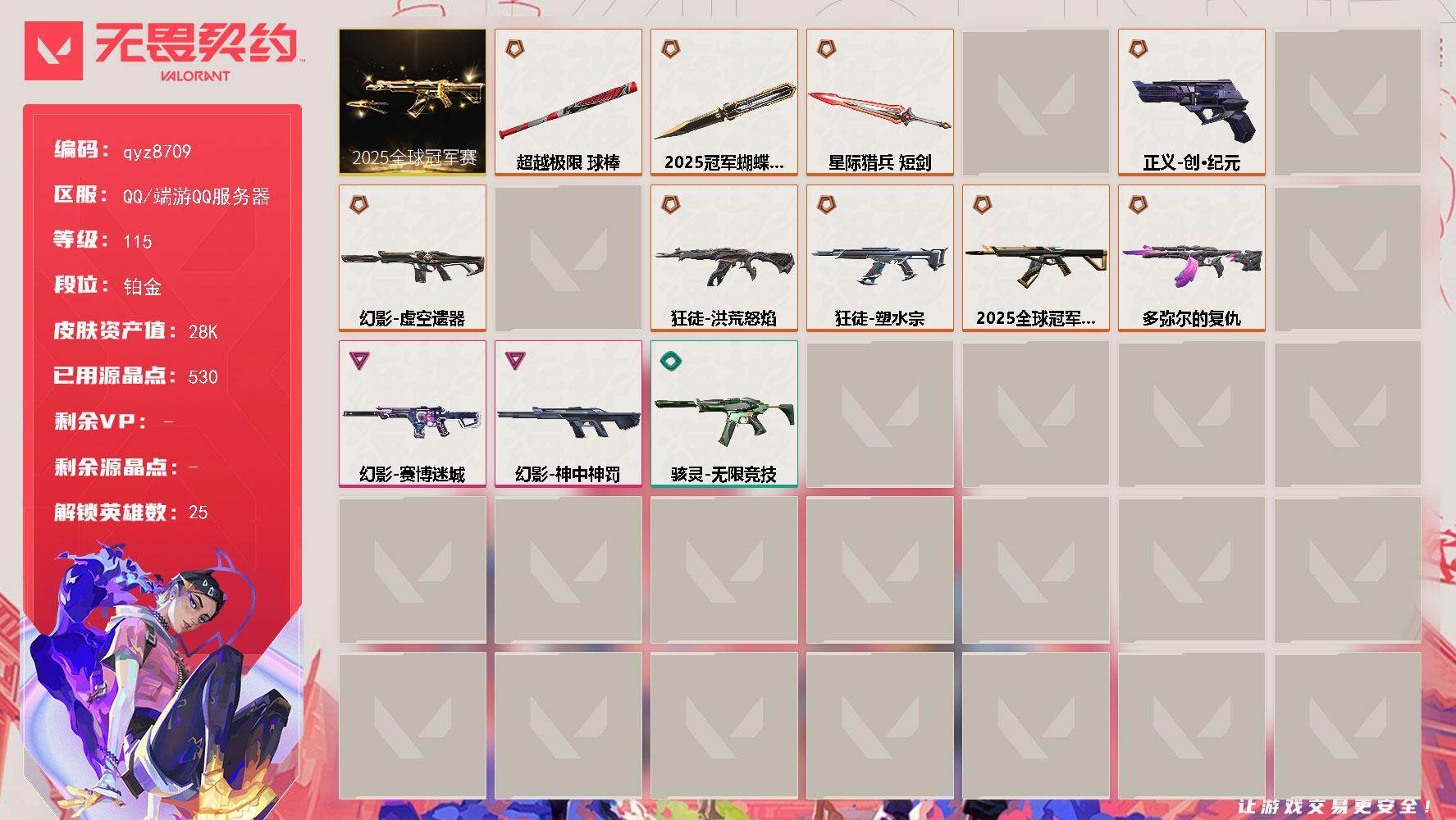 25冠军套紫金、塑水、盖亚、超多热门皮肤近战、枪皮