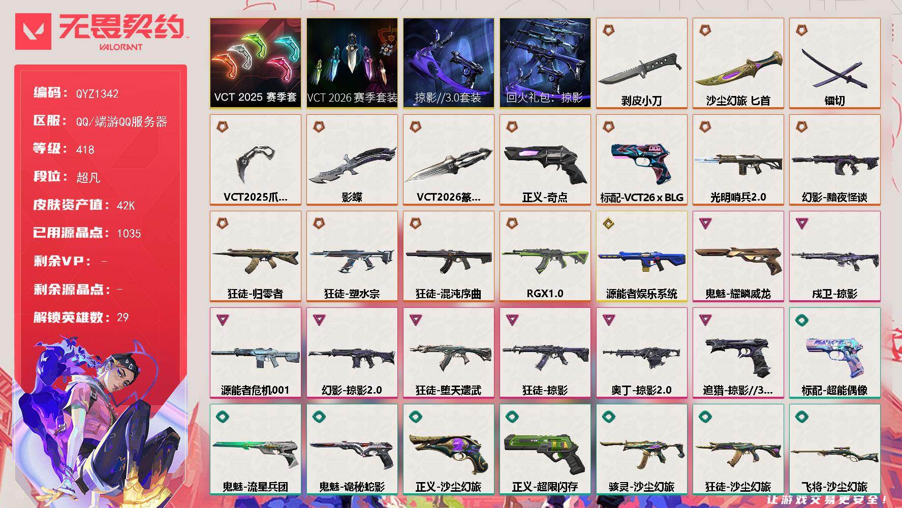 【套装】:VCT 2026 赛季套装,ORA x 颗秒套装【英雄】:炼狱,维斯,暮