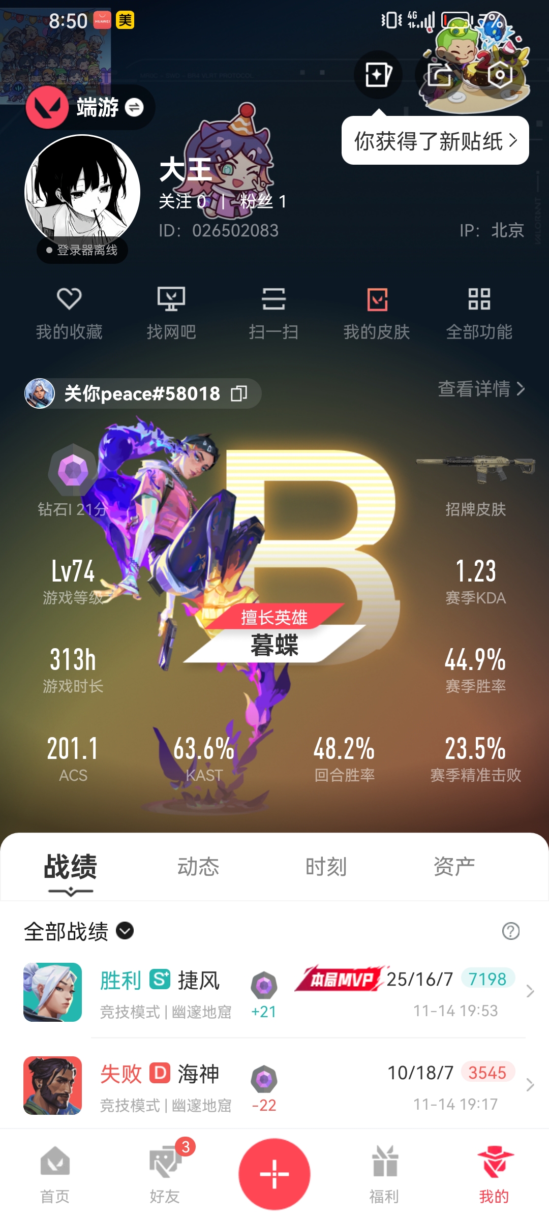 Lv197|钻石II, 刀皮数量8,枪皮数量59(绝版5限定1
