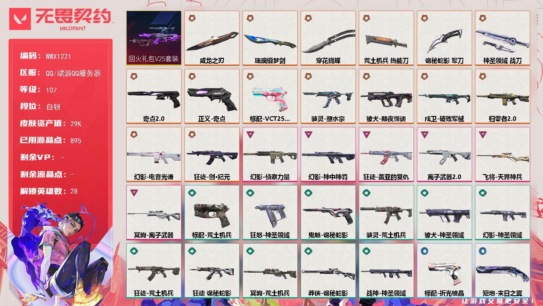 终极*15/卓越*6/皮肤*67/等级*107/段位:白银/回火礼包// V25套装