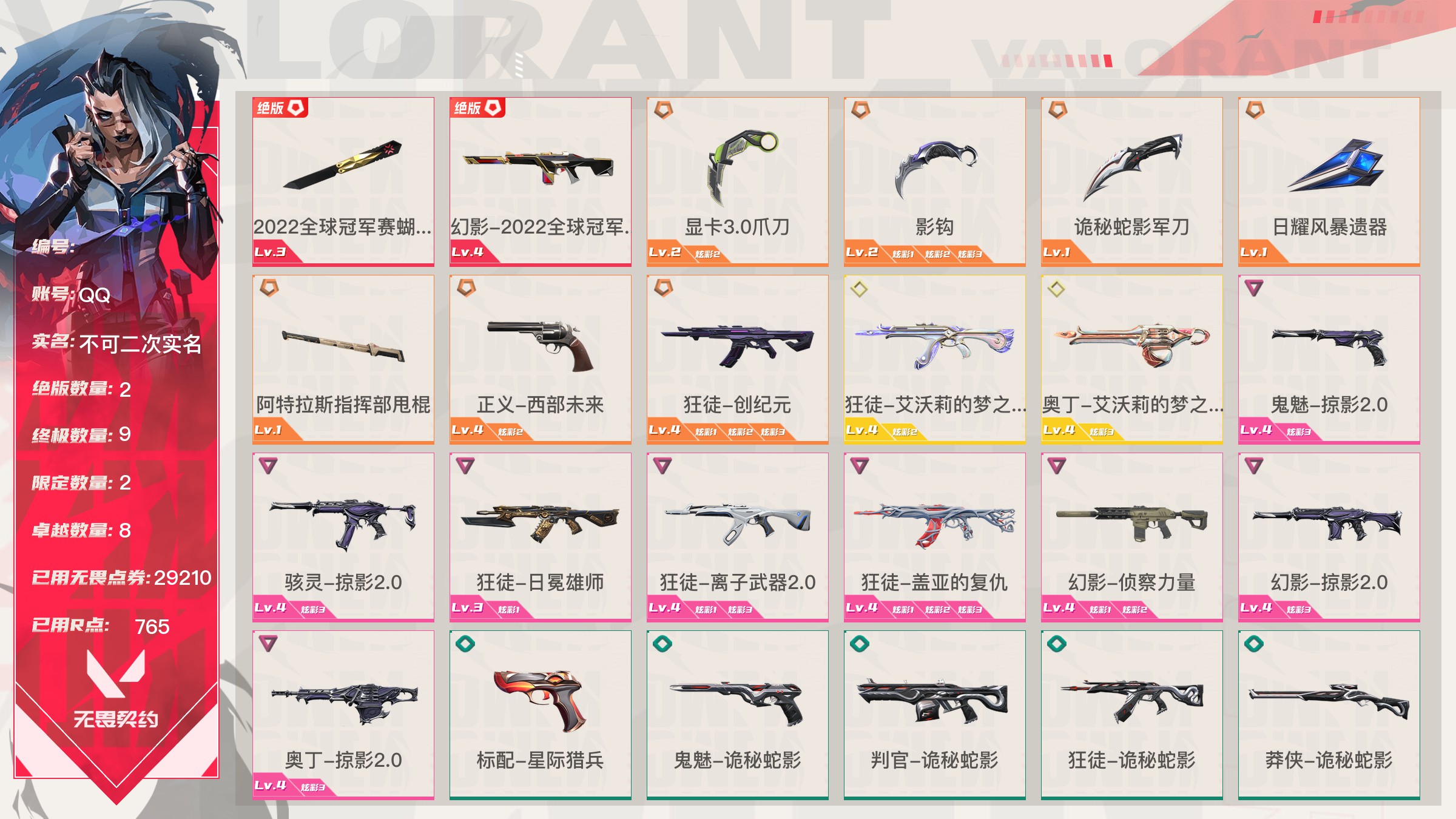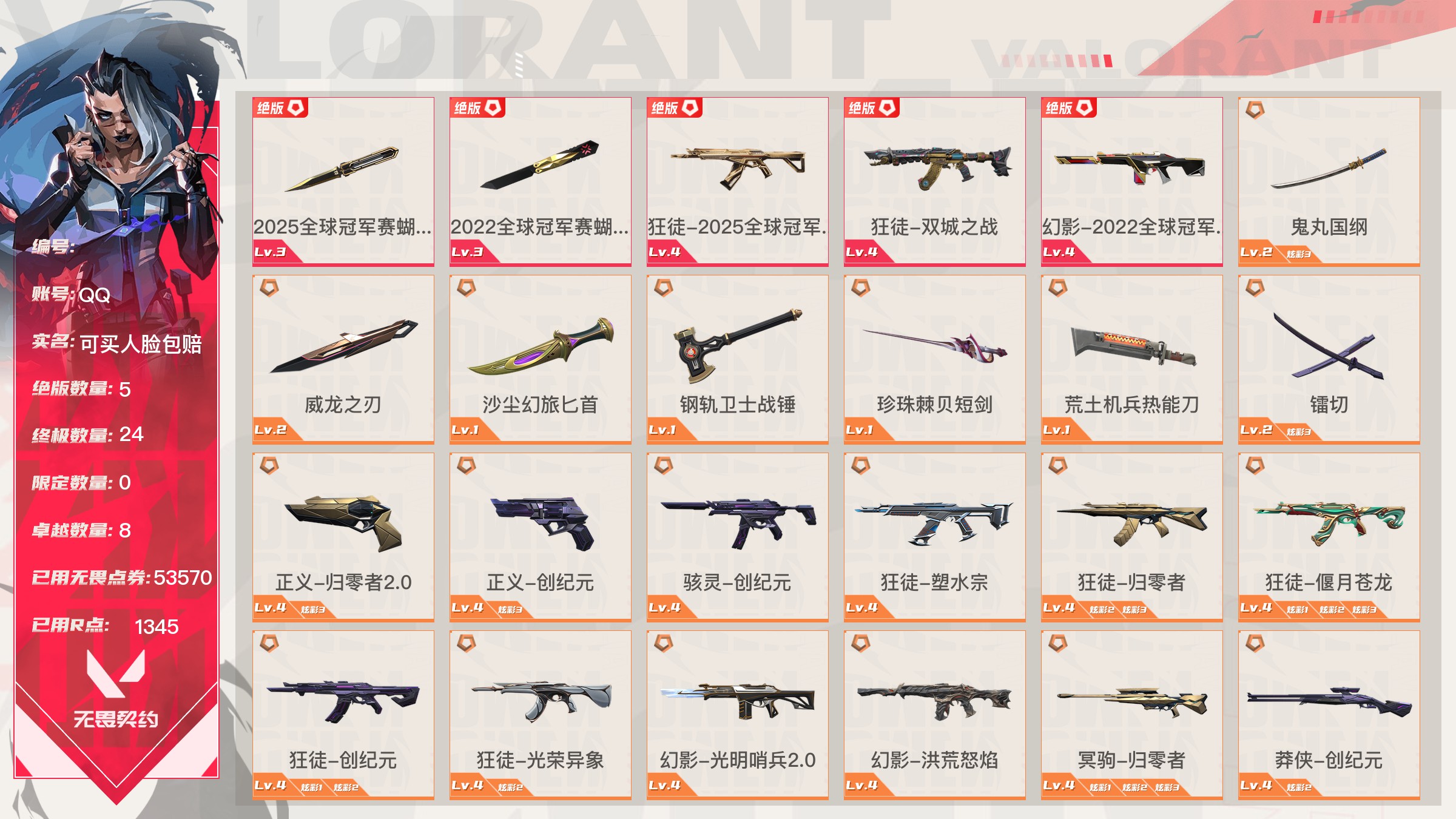 Lv171|未定级, 刀皮数量10,枪皮数量76(绝版5限定2