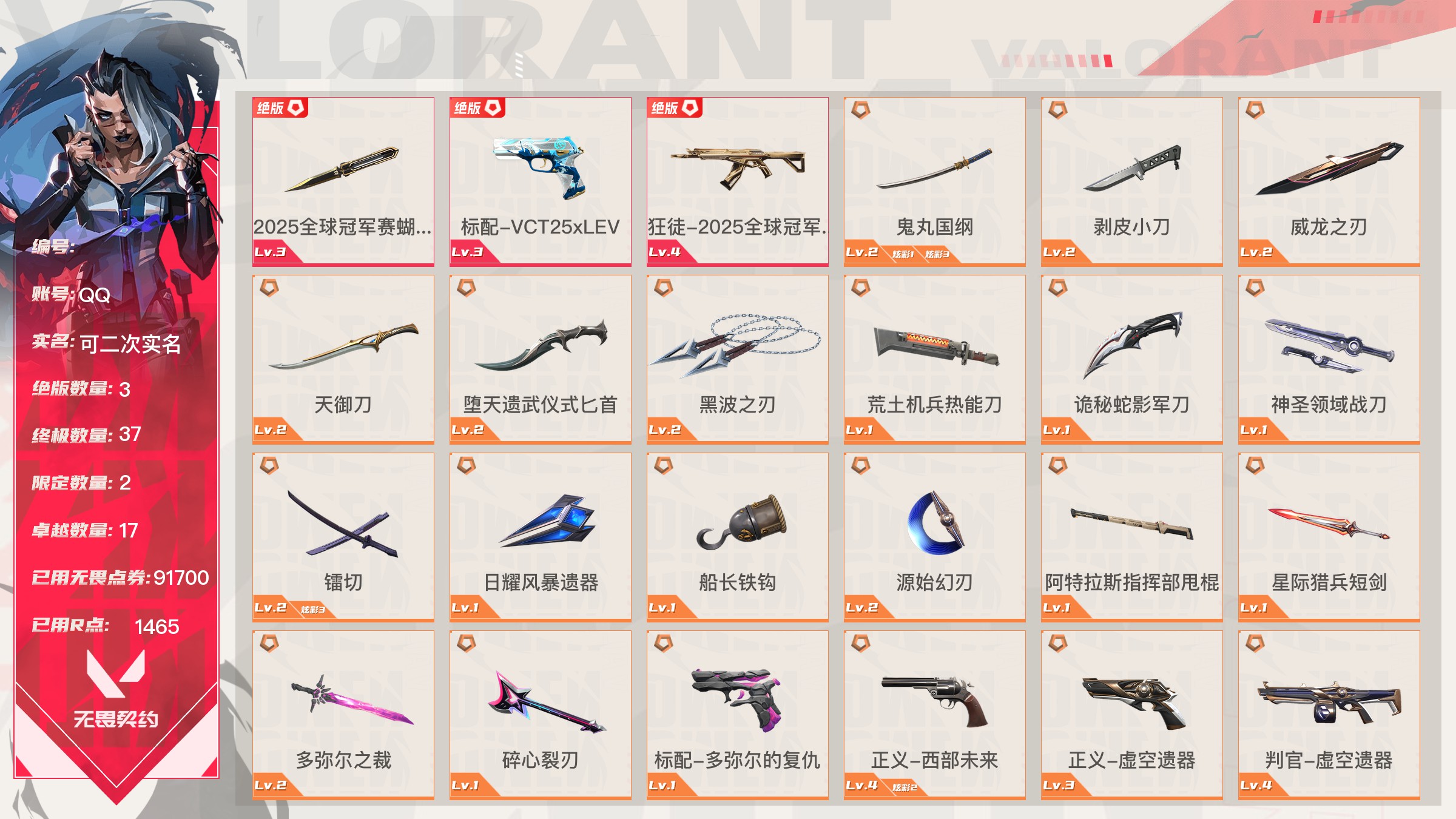 Lv86|白银III, 刀皮数量3,枪皮数量38(绝版2限定8