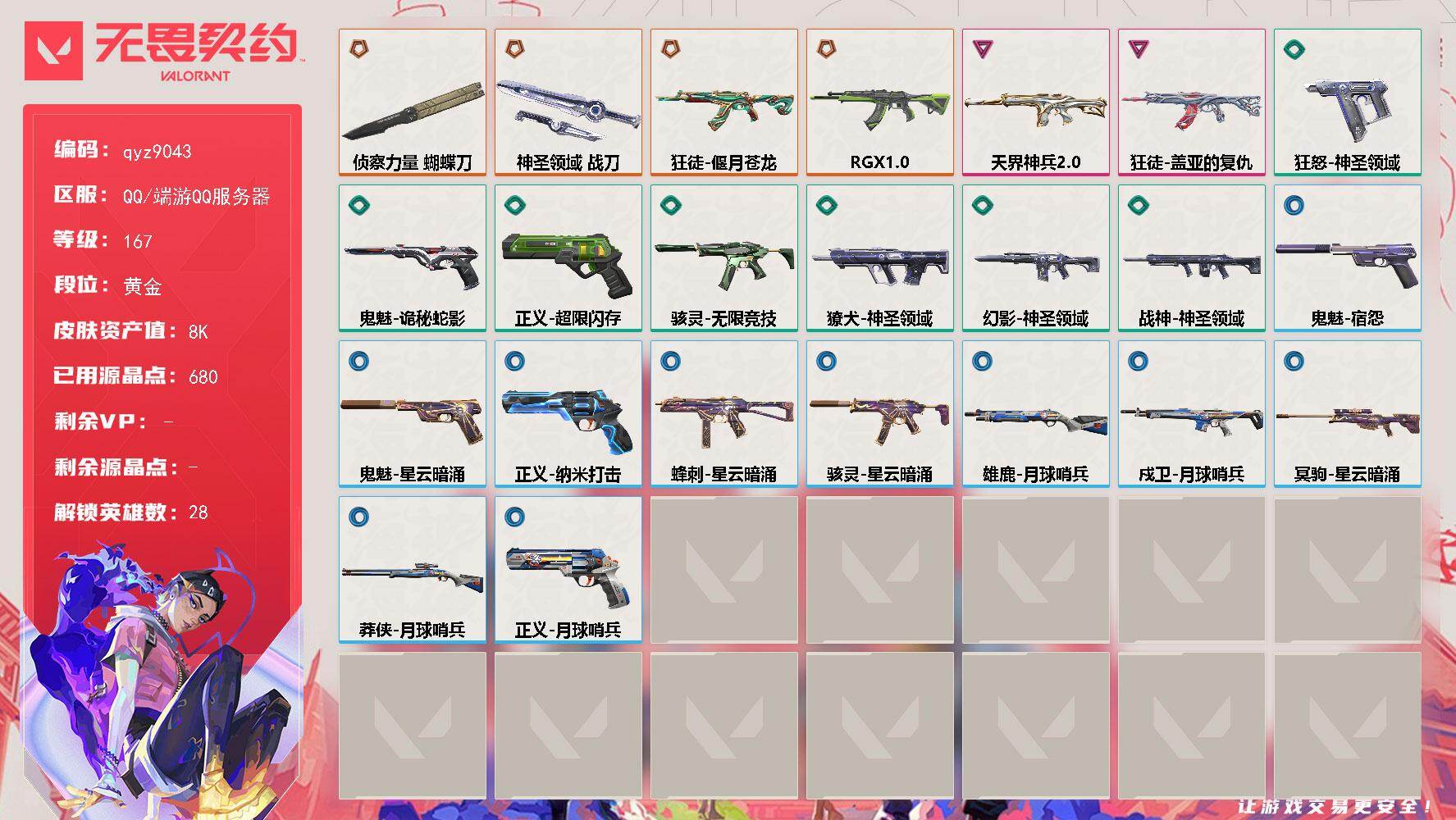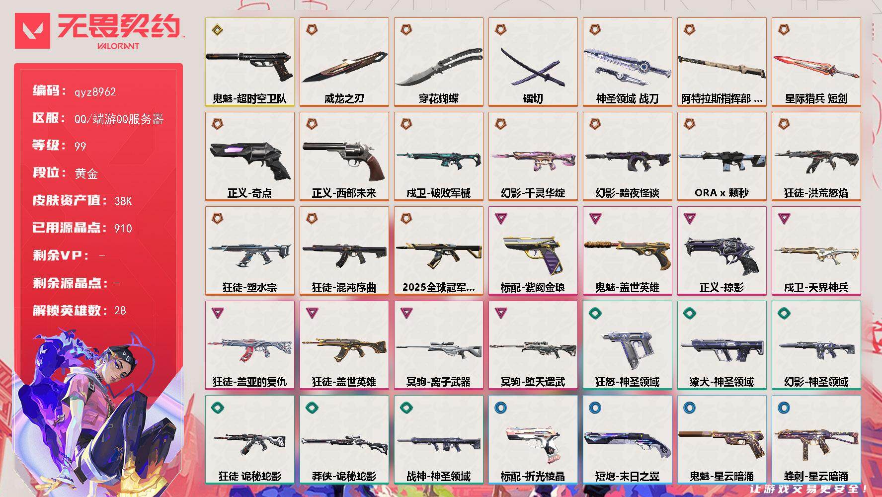 【28英雄 38皮肤 资产14010 枪皮-ORAx颗秒 混沌序曲-狂徒 掠影-狂徒