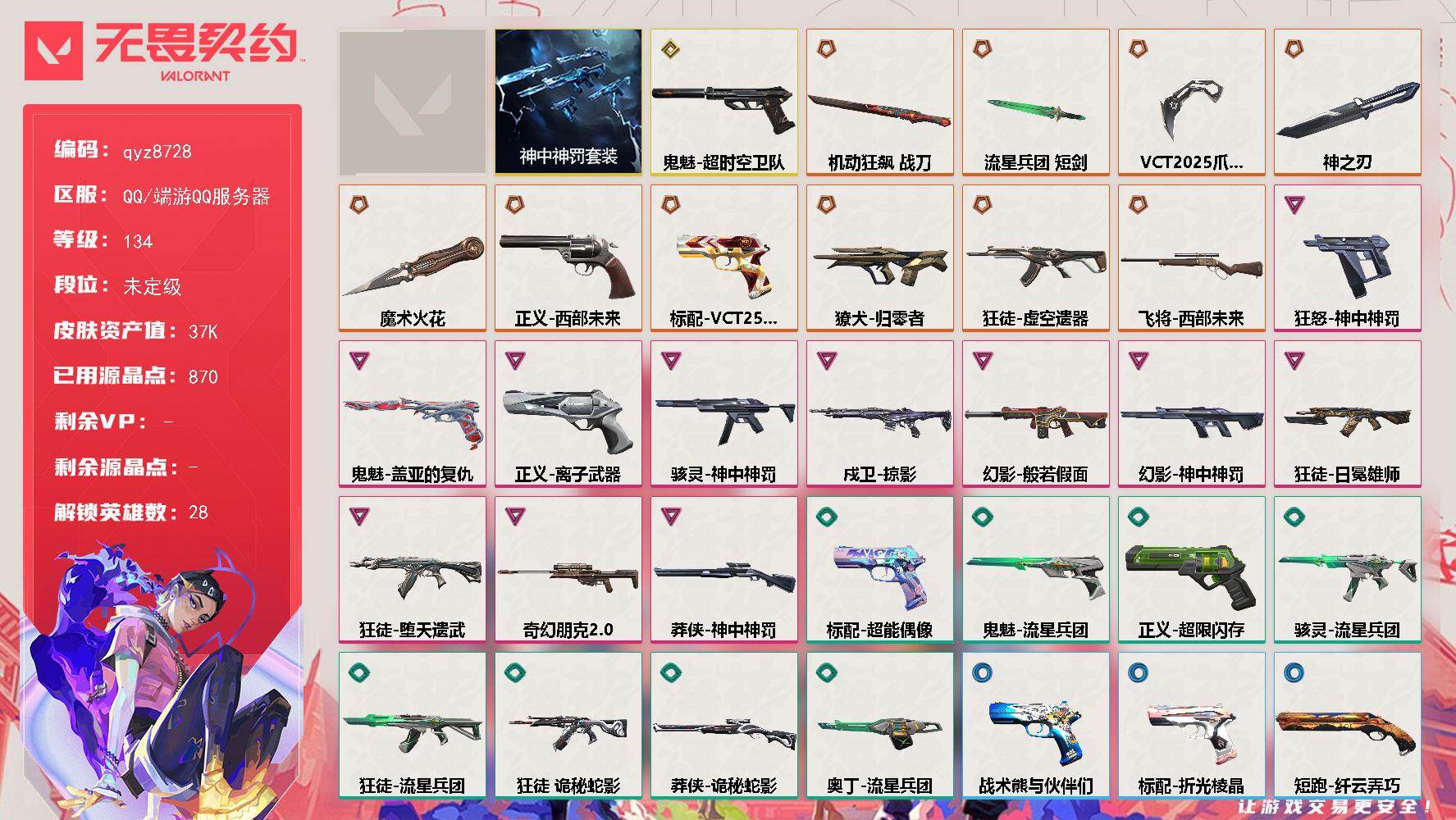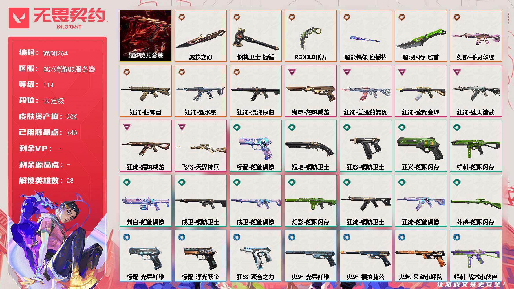【28英雄 38皮肤 资产14010 枪皮-ORAx颗秒 混沌序曲-狂徒 掠影-狂徒