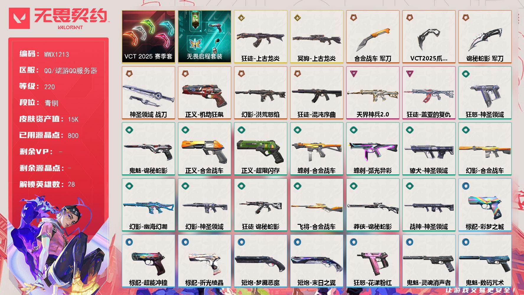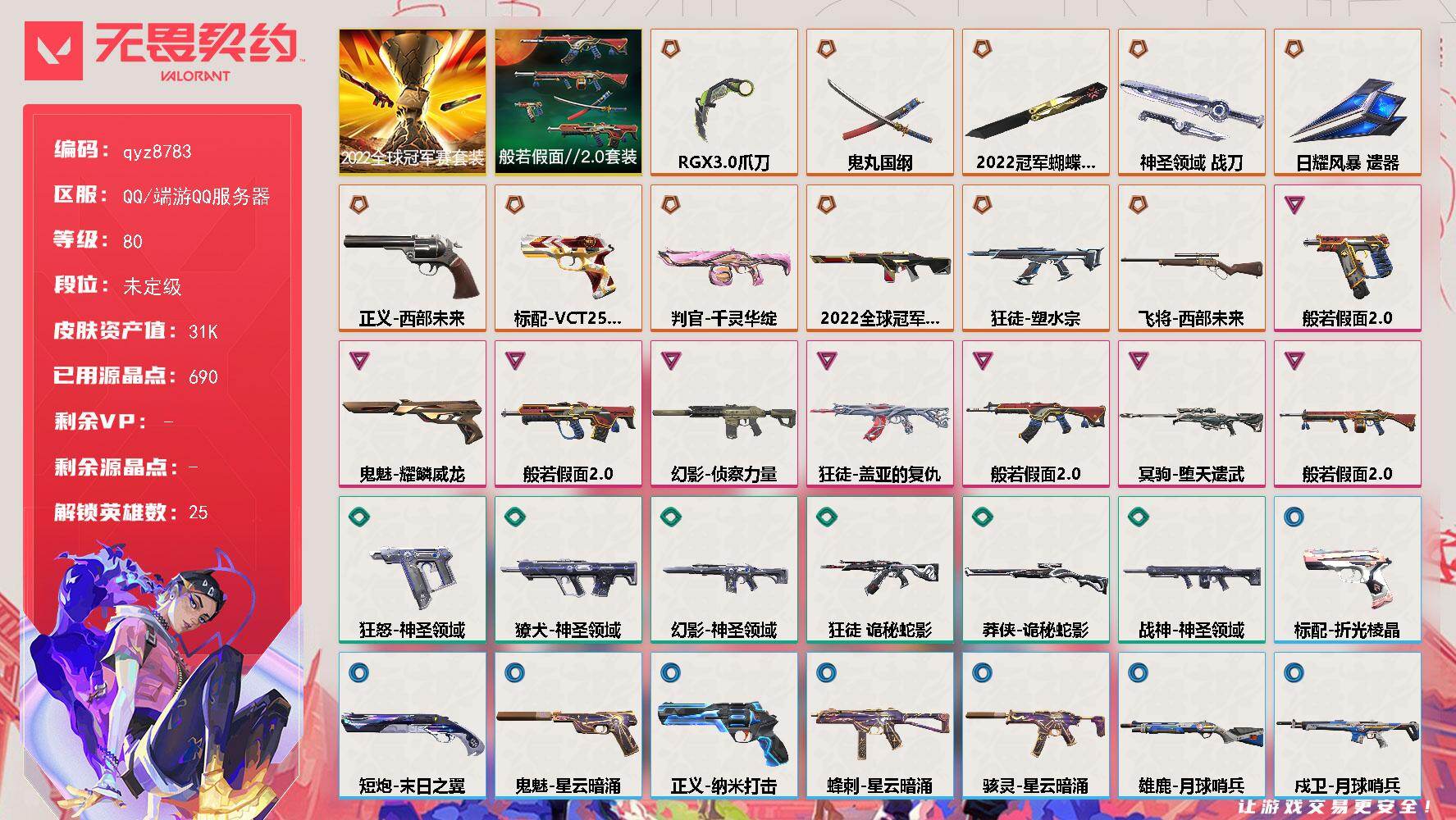 【2025冠军套】游戏等级:29-段位:白银-皮肤价值5670-已用源晶点数95-英
