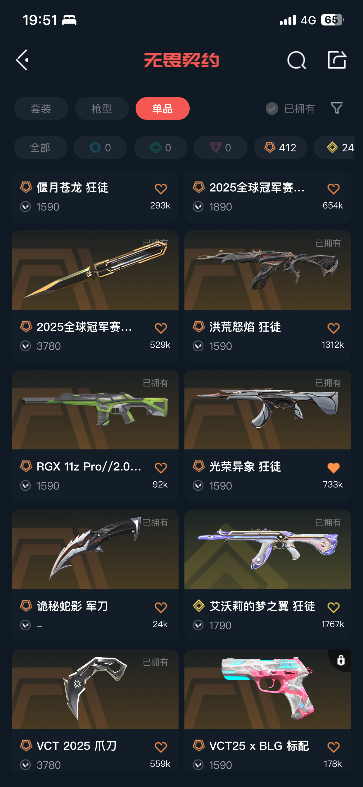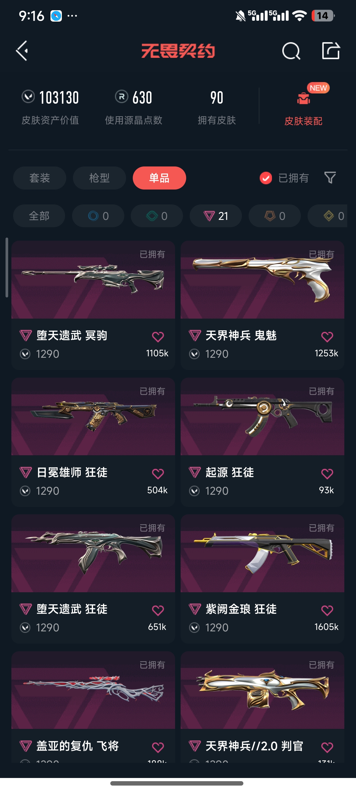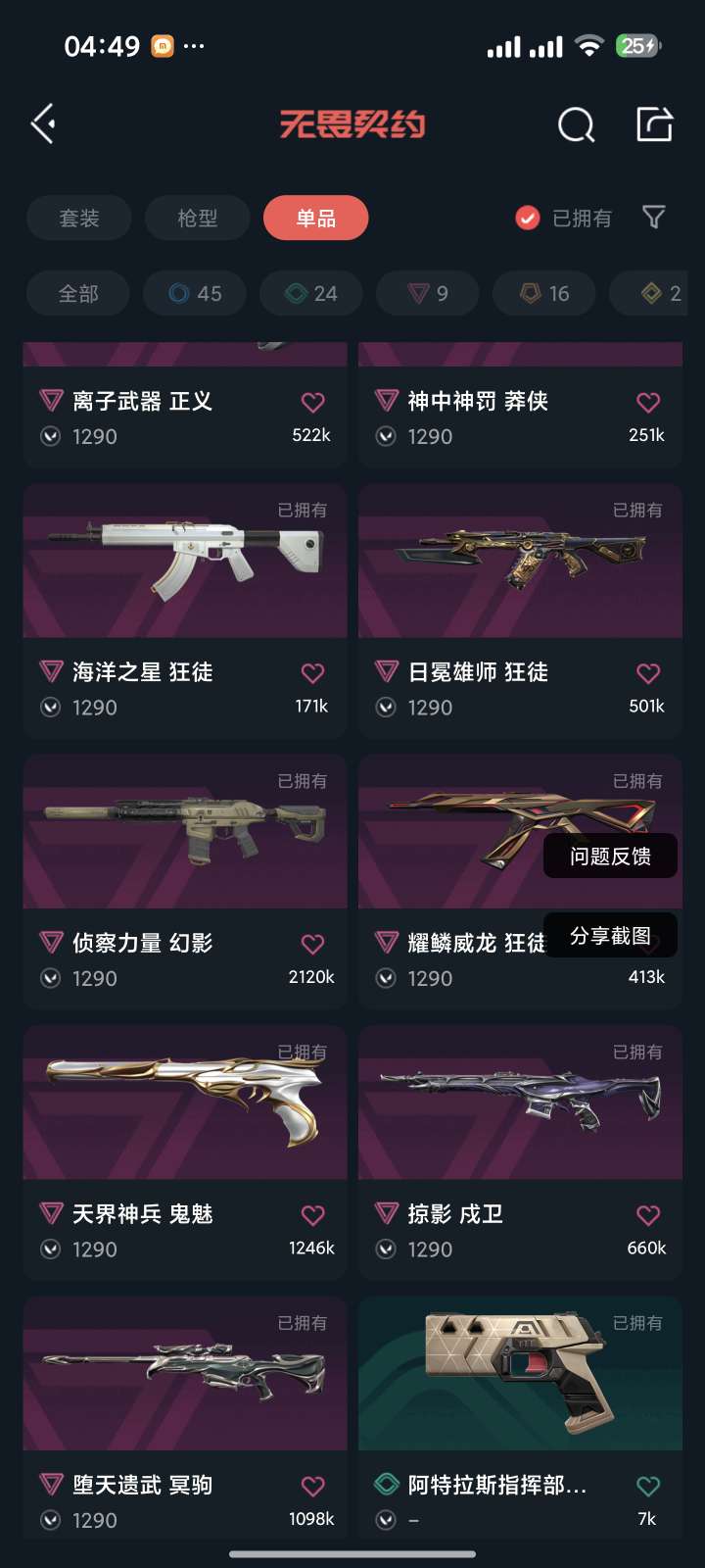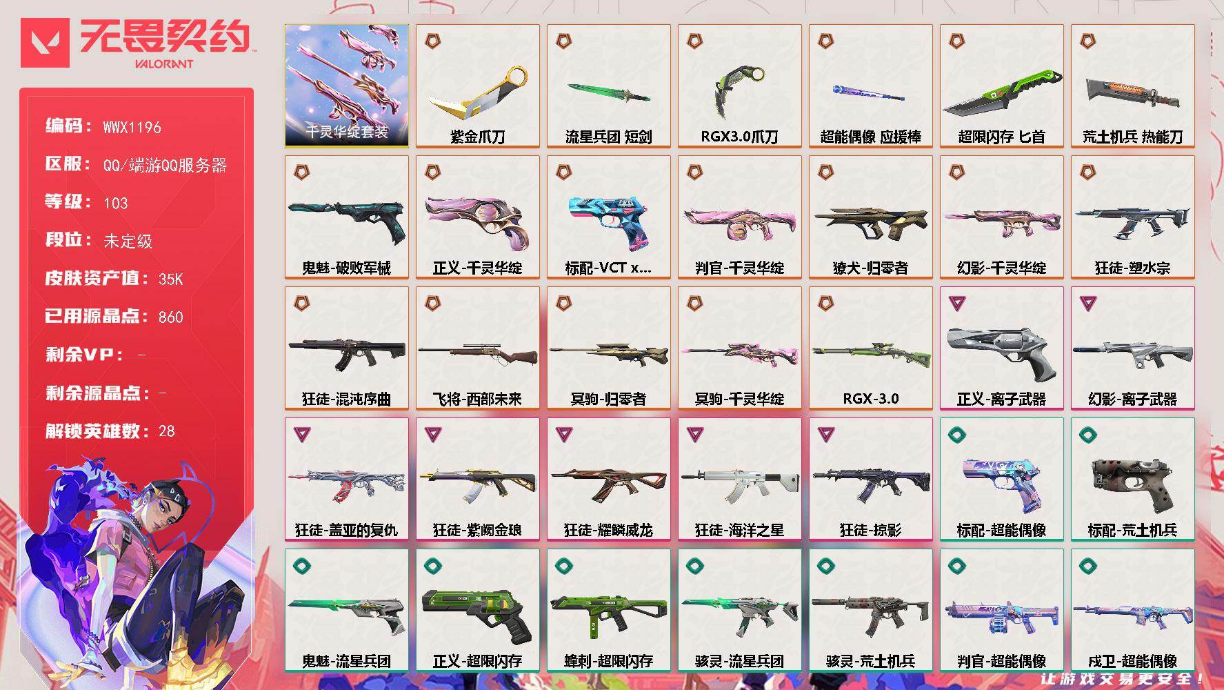 终极*1/卓越*1/皮肤*4/等级*57/段位:黄金/无畏契约季前邀请赛套装