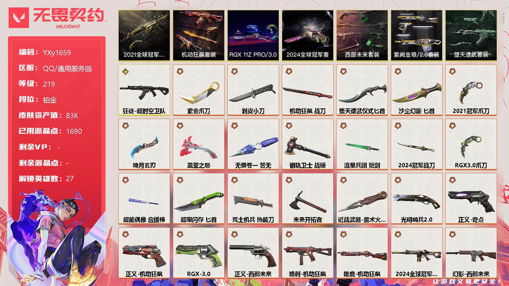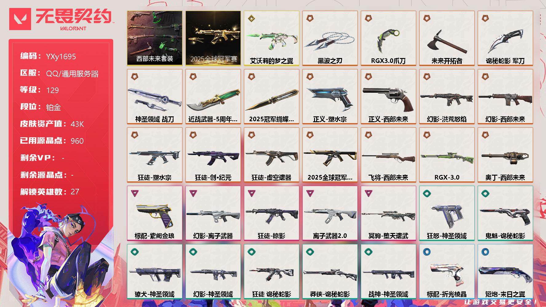 无畏契约【端游】【4.3w库存25冠军套.西部套.黑波之刃.显卡爪刀.五周年.六狂徒三幻影】Y
