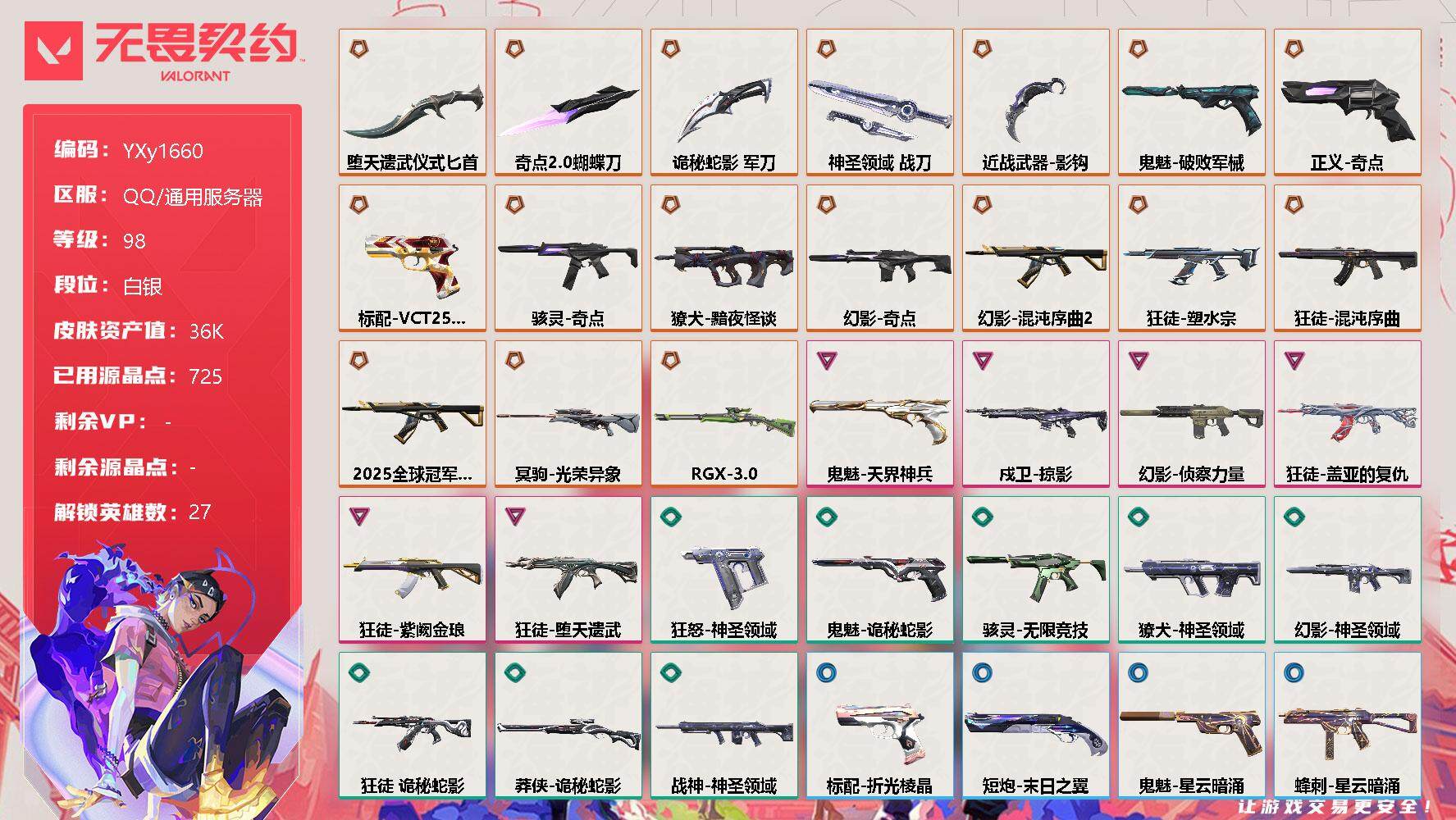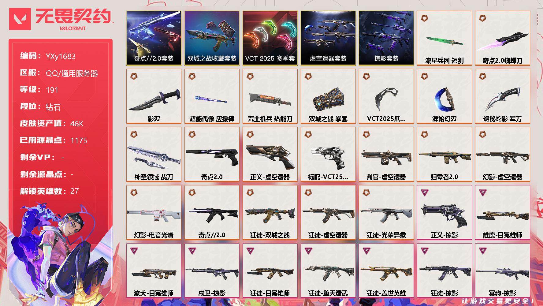 无畏契约【端游】【4.6w库存VCT爪刀.双城套装.奇点蝴蝶刀.七狂徒三幻影】YXy1683【