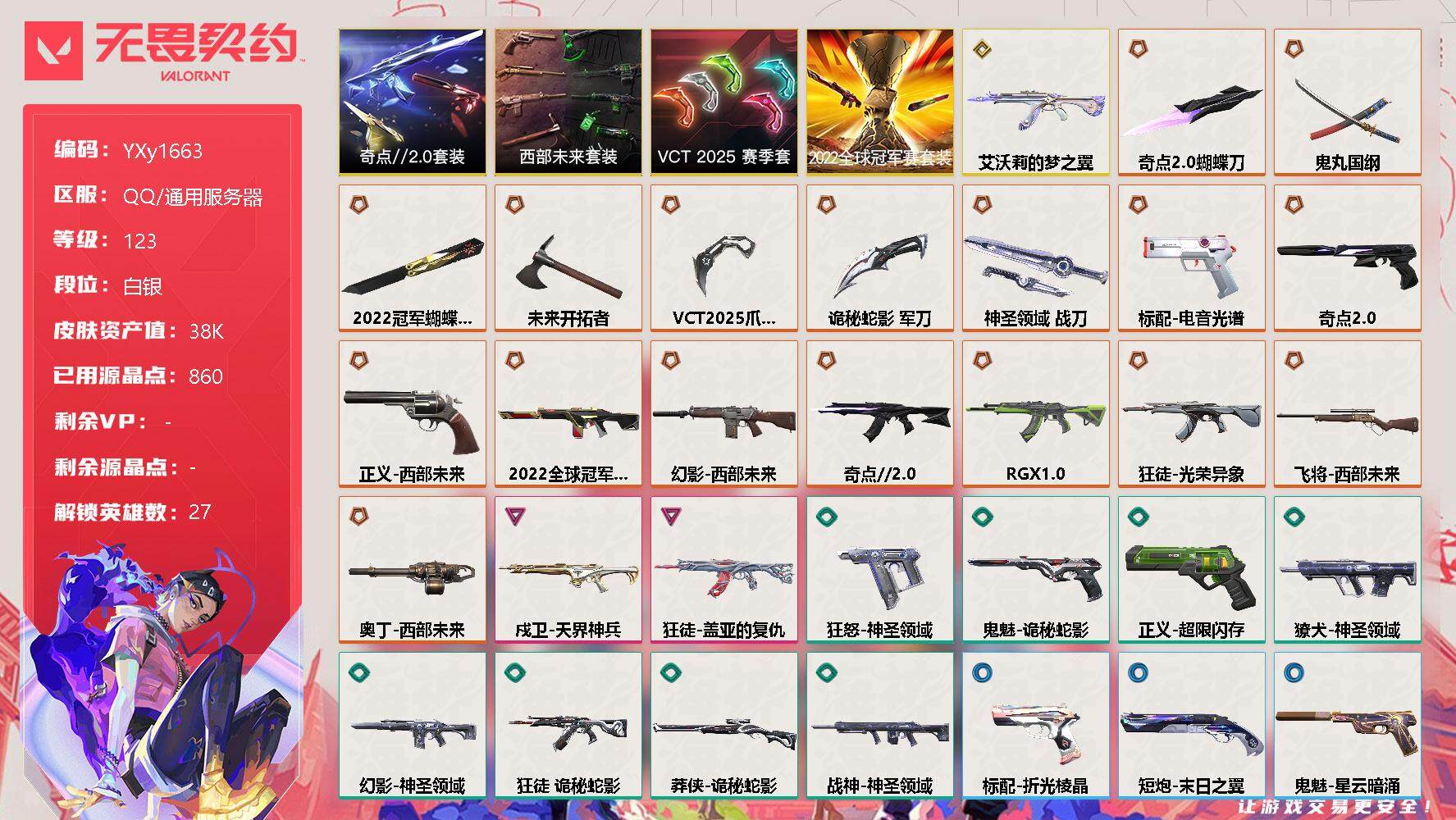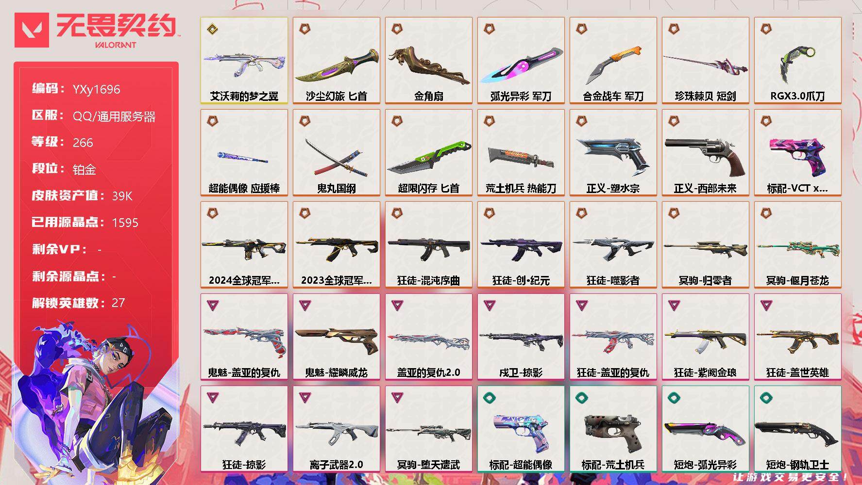 无畏契约【端游】【3.8w库存22冠军套.VCT爪刀.奇点蝴蝶刀.太刀.猫猫AK.显卡.盖亚.