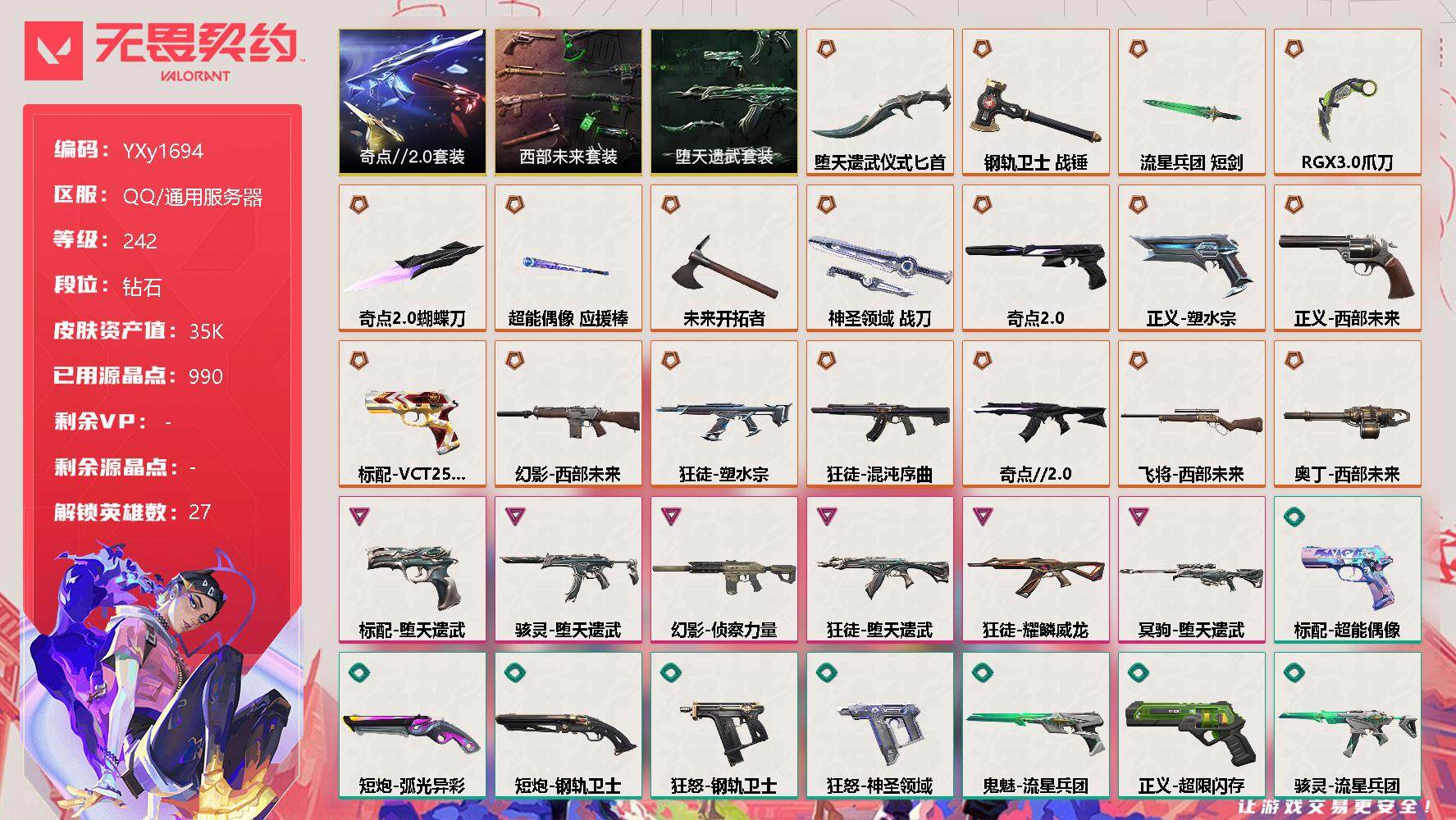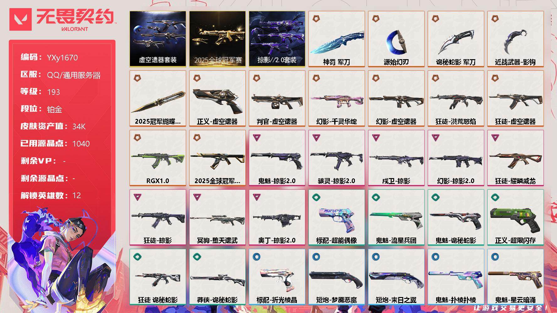 无畏契约【端游】【3.4w库存25冠军套.掠夺套.虚空套.六狂徒.流脓.显卡.掠夺.威龙.千灵
