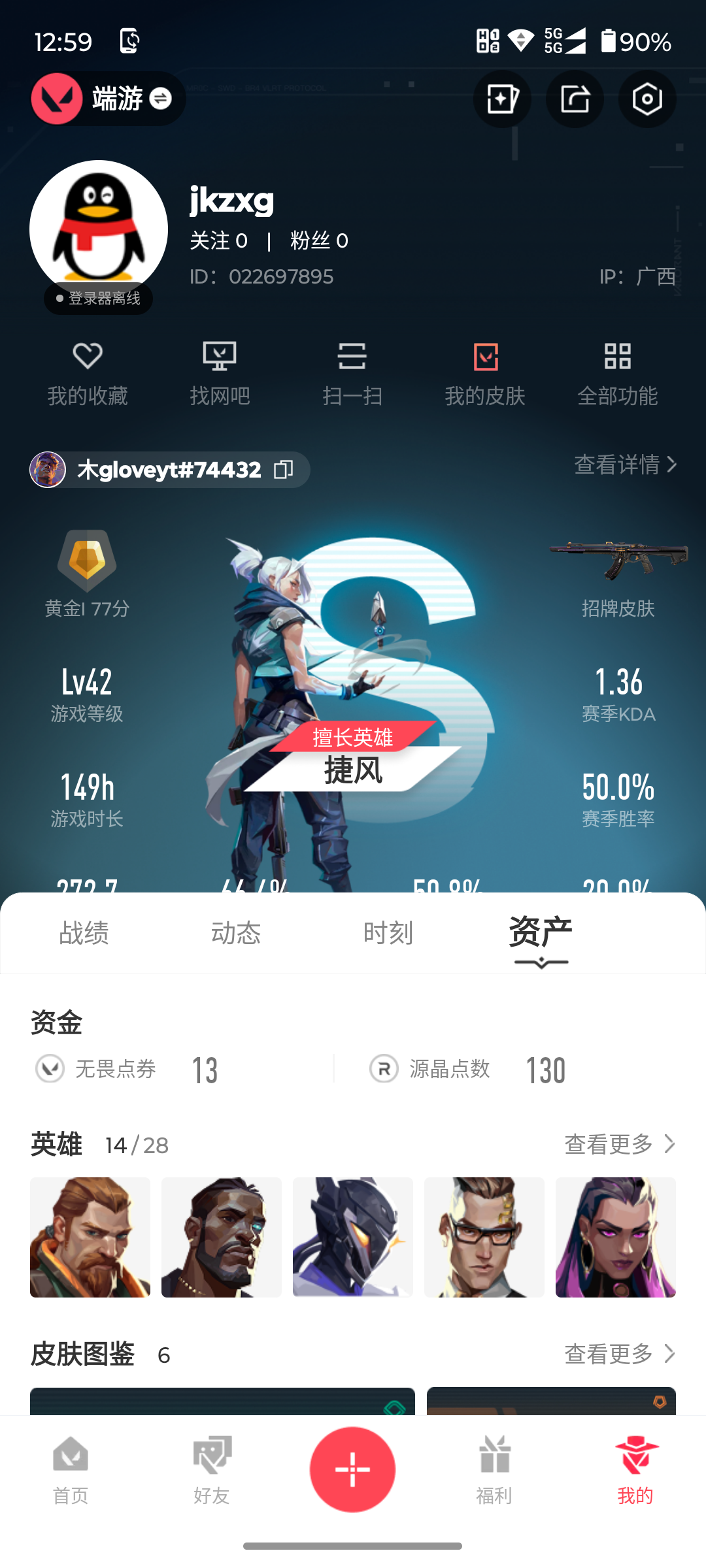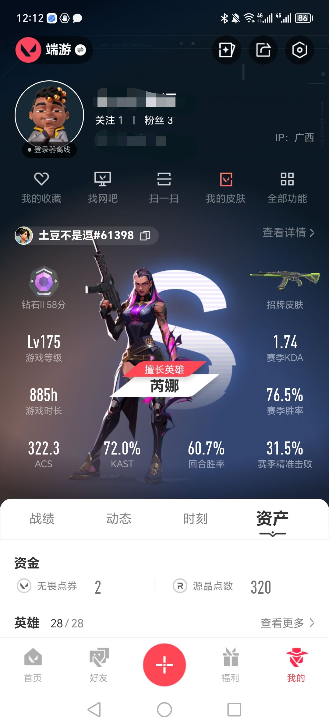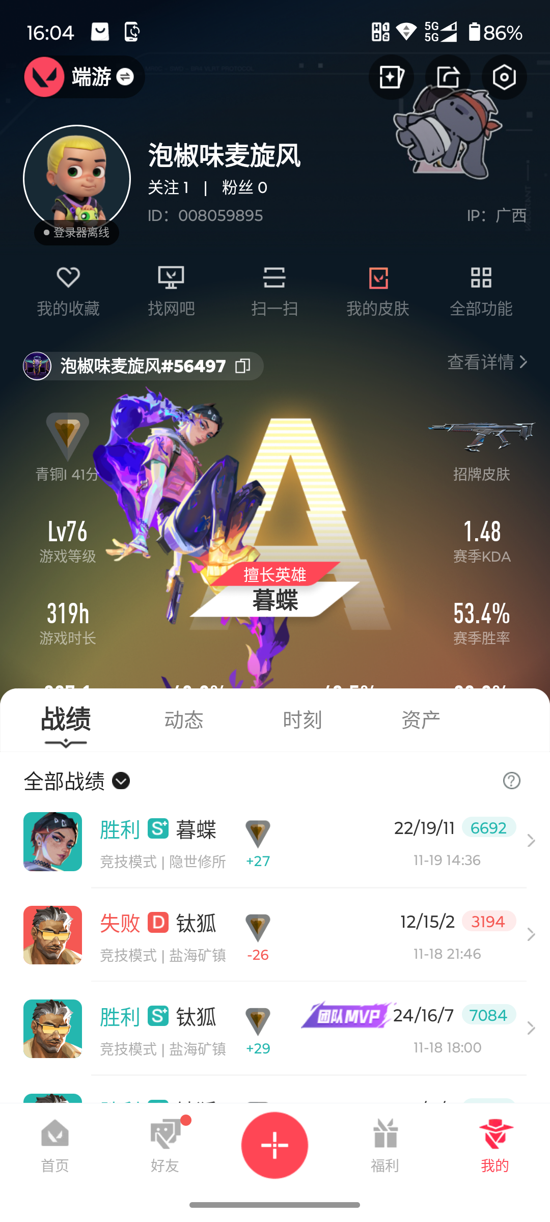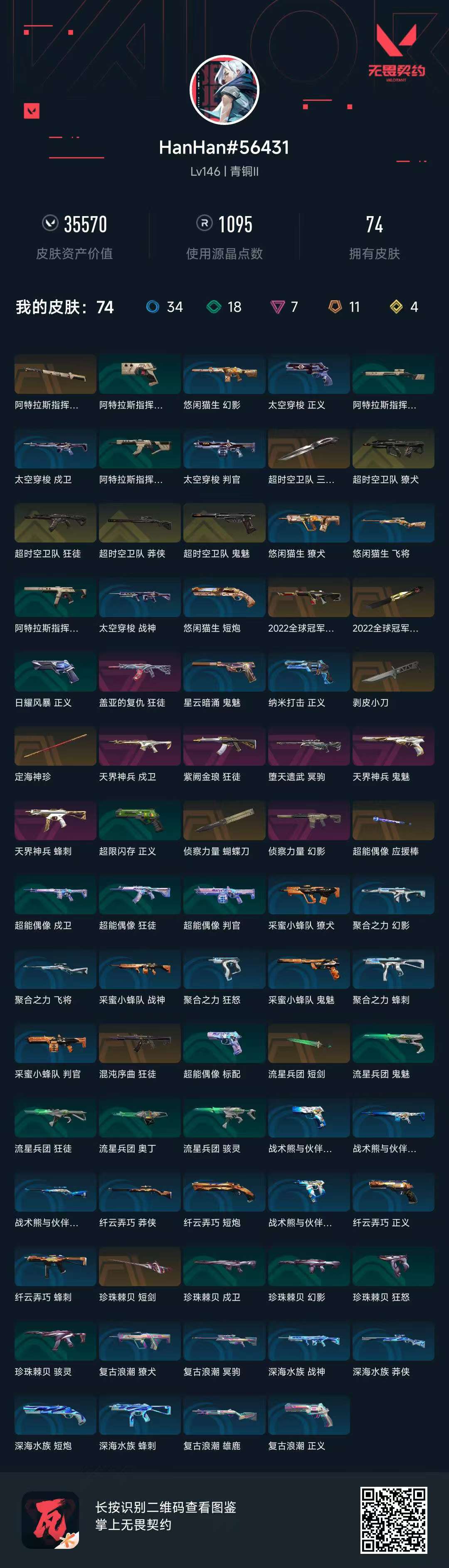 游戏等级76-段位:青铜-皮肤价值15610