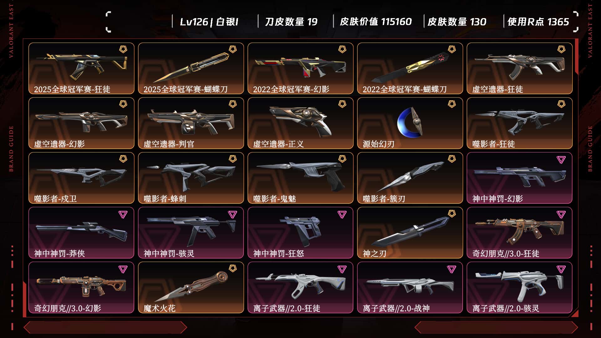 H5119/ Lv126 /皮肤总价值115160/白银I,总皮肤130/刀皮19枪皮111(终极3