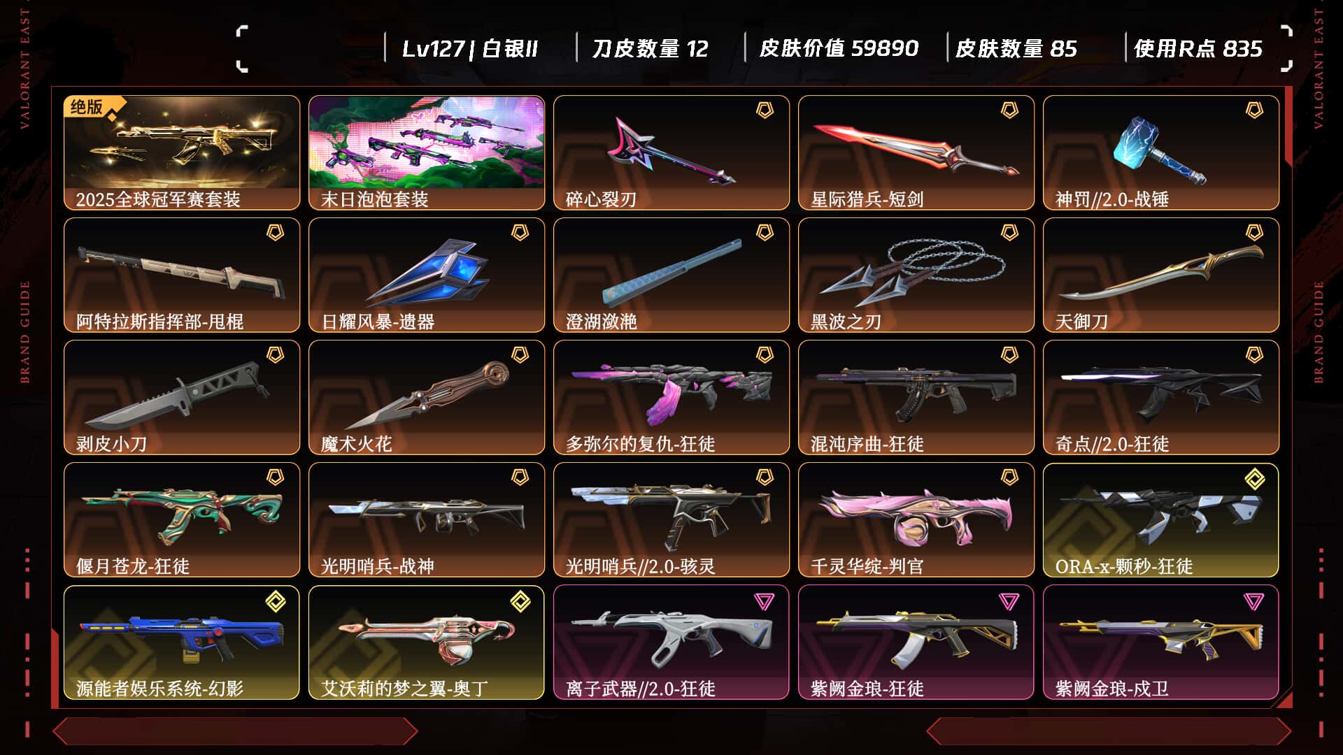 H9289【皮肤资产价值】/59890/【使用R点】/835/【英雄数量】/24/【皮肤数量】/85