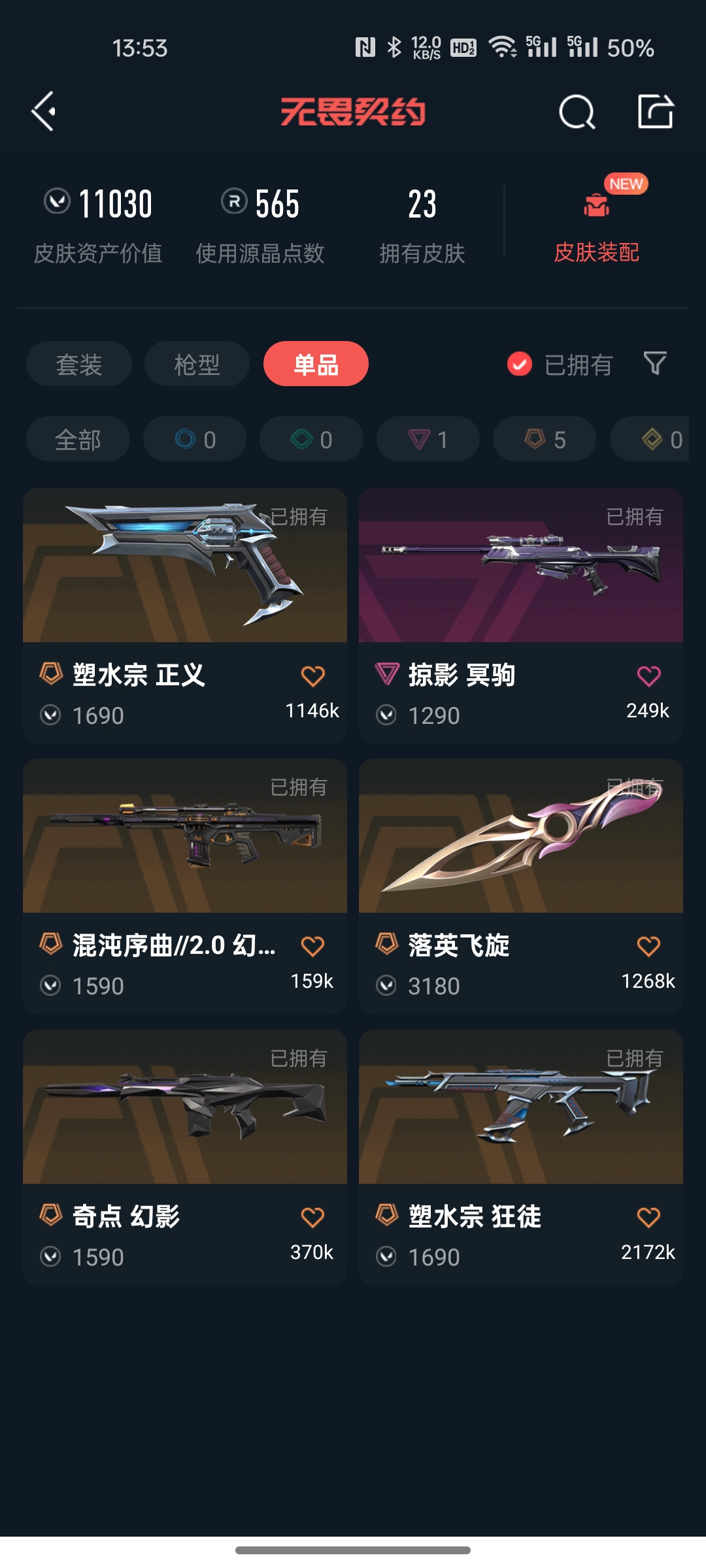 精品号-皮肤资产1.6-显卡爪刀-指虎-千灵华绽幻影-苍龙狂徒-西部正义