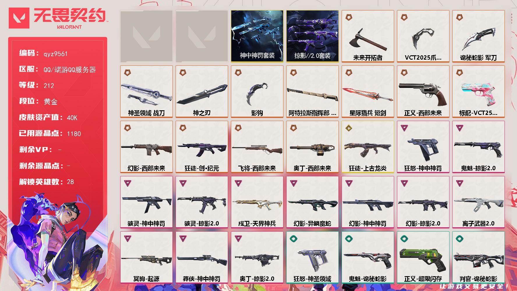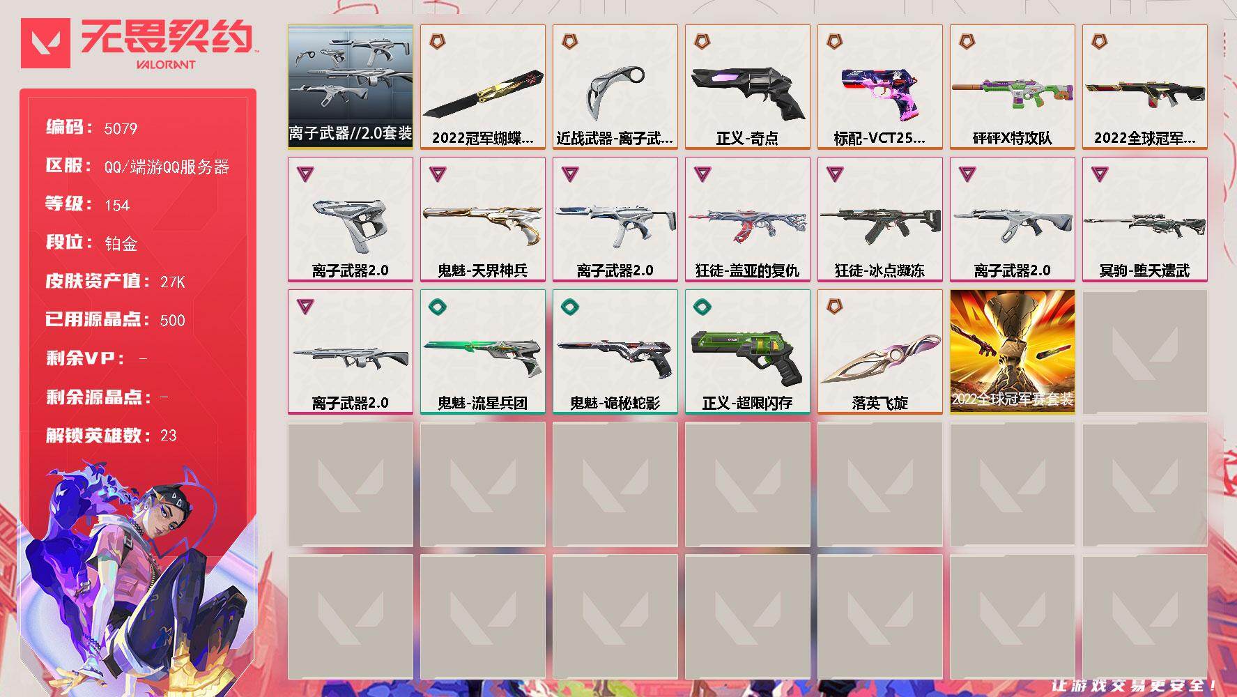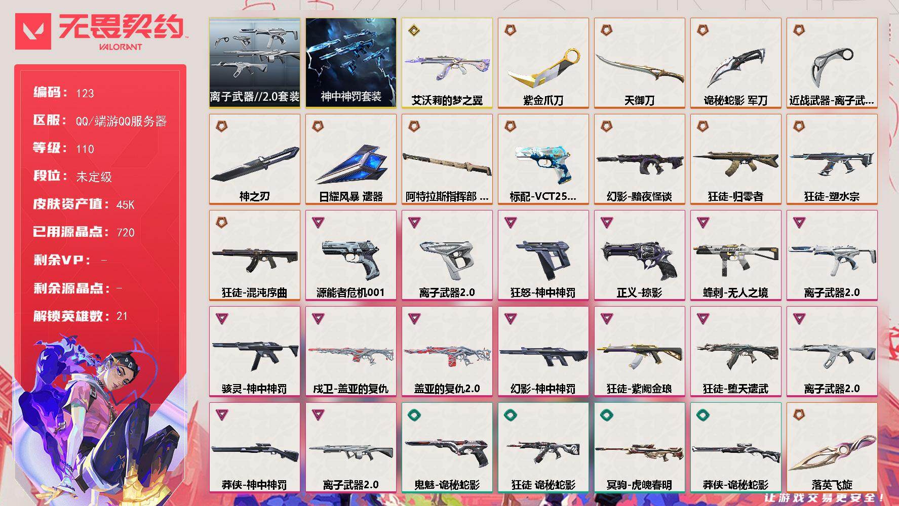 等级*22/段位:黑铁/炼狱/维斯/暮蝶/壹决/捷风/幽影/不死鸟/