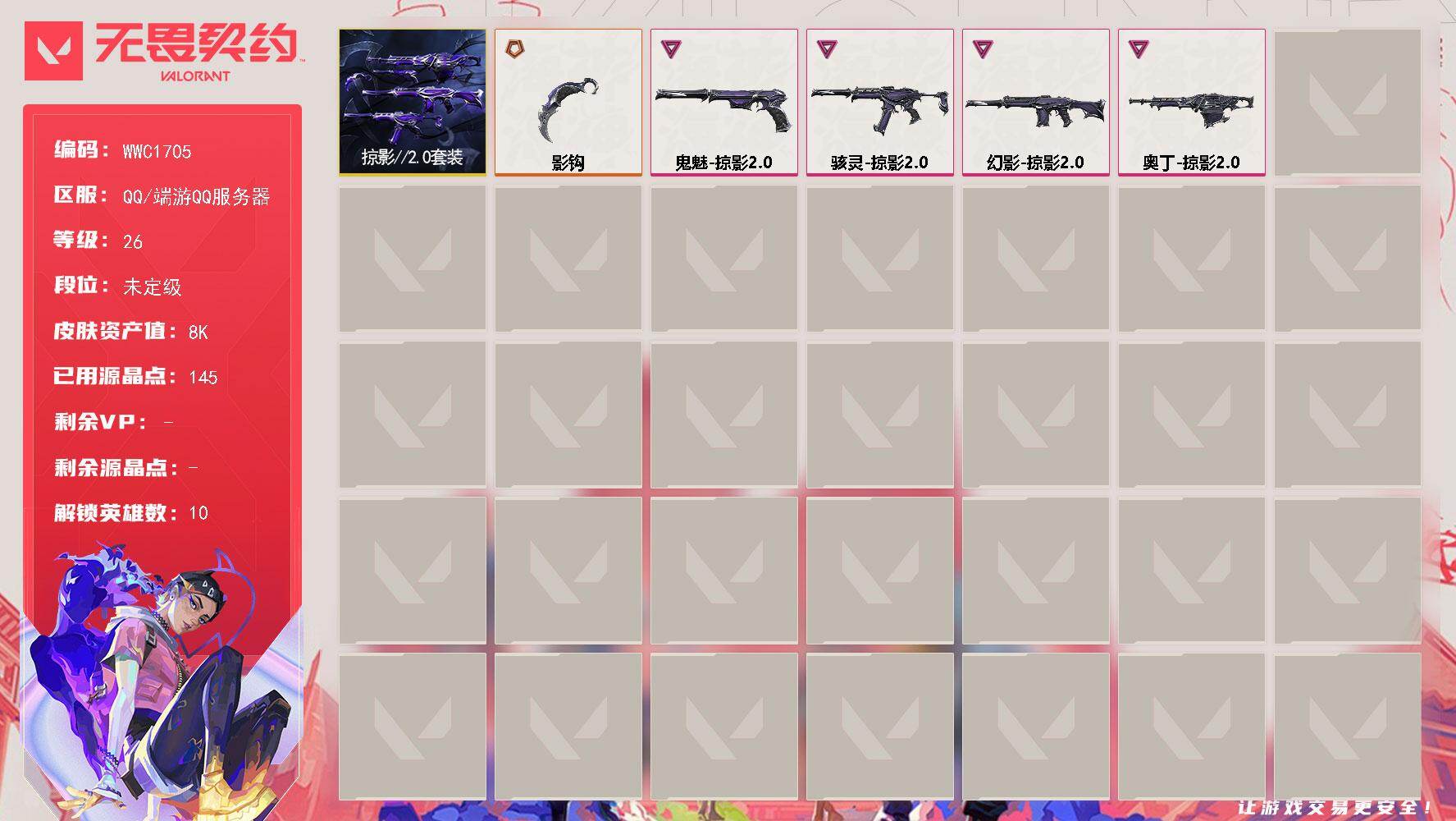 终极*1/卓越*4/皮肤*6/等级*26/段位:未定级/掠影//2