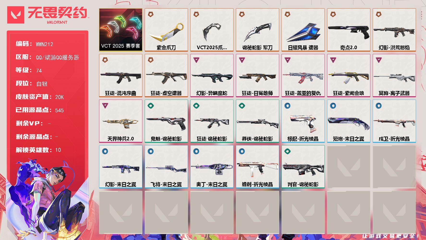 终极*8/卓越*6/皮肤*37/等级*74/段位:白银/