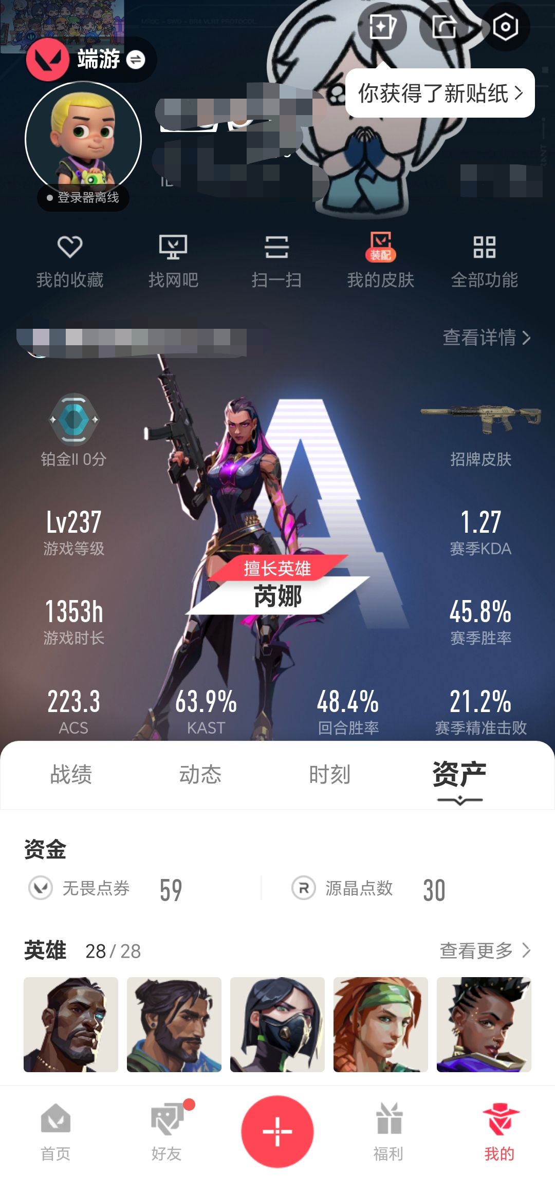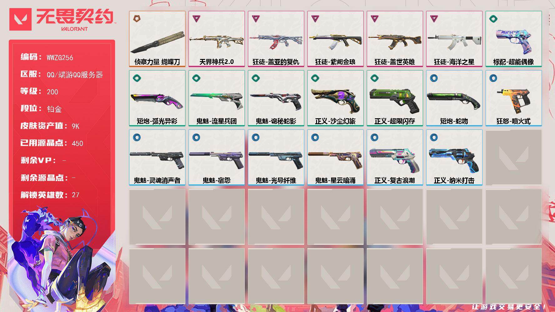 终极*1/卓越*5/皮肤*22/等级*200/段位:铂金