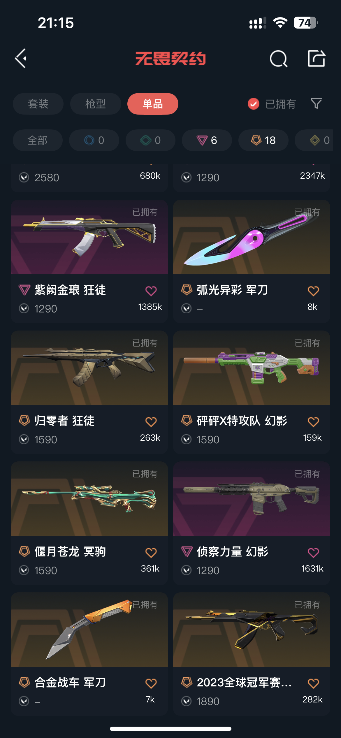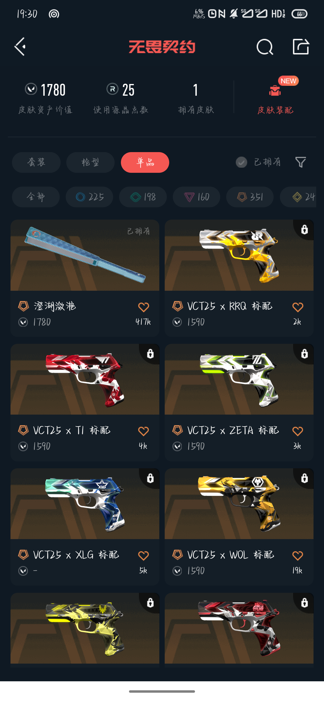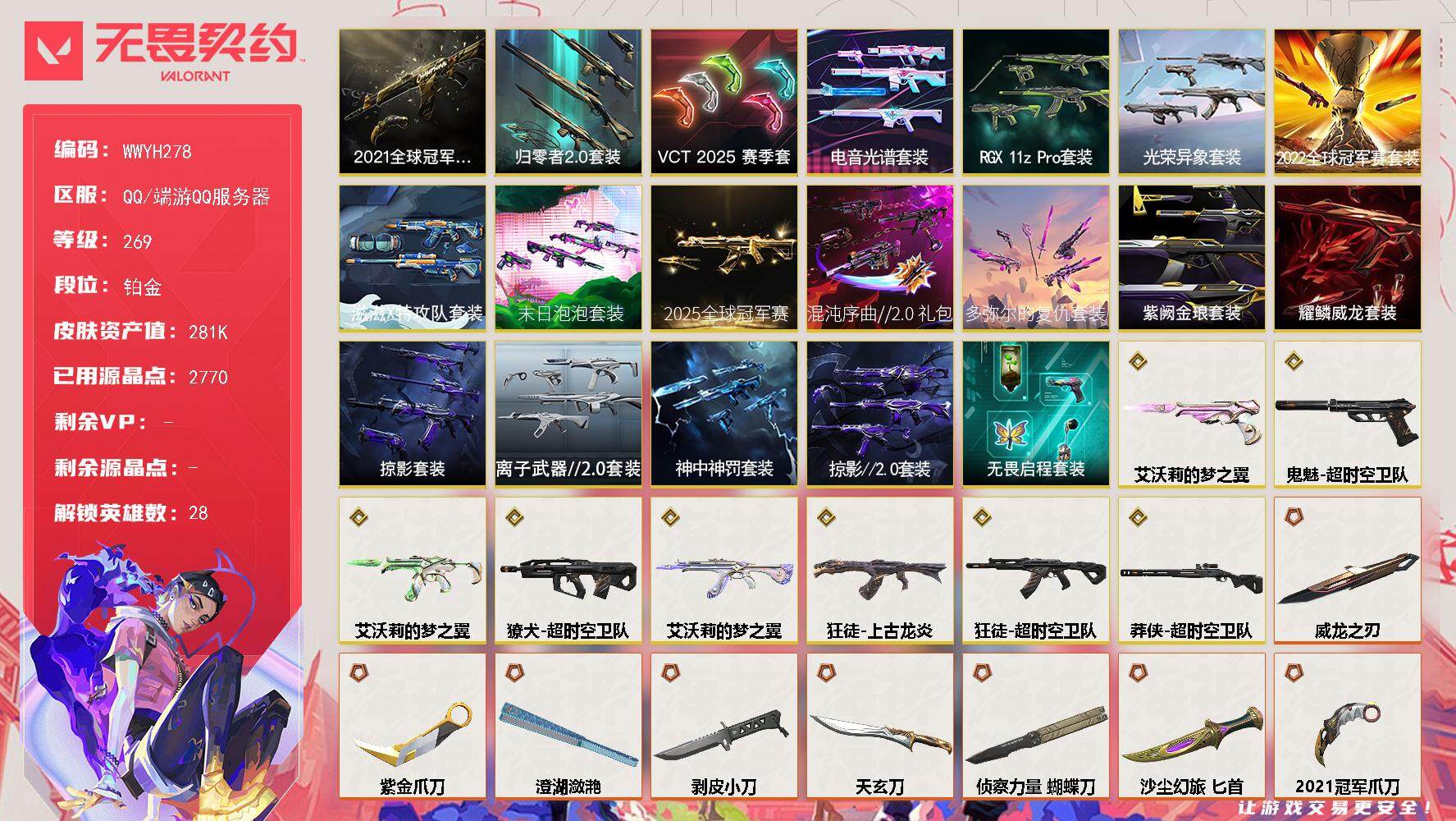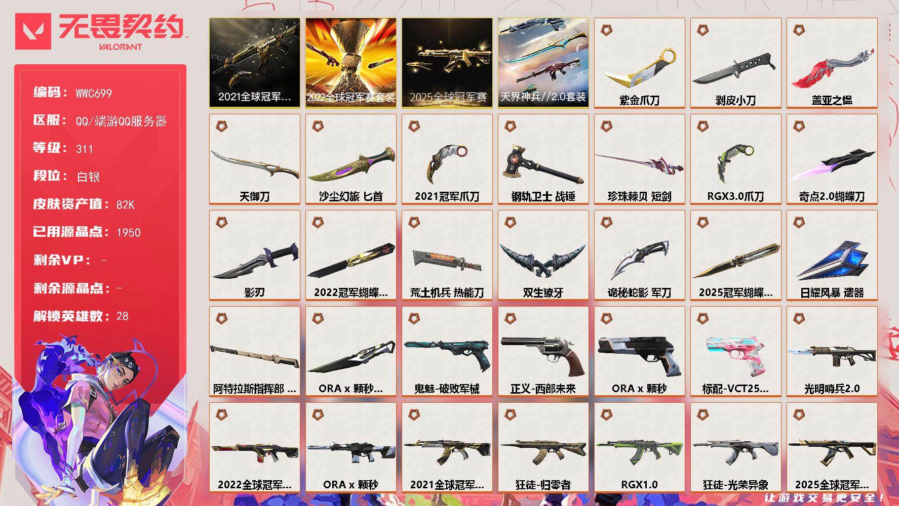 终极*18/卓越*13/皮肤*91/等级*116/段位:白银/VCT 2025 赛季套装/