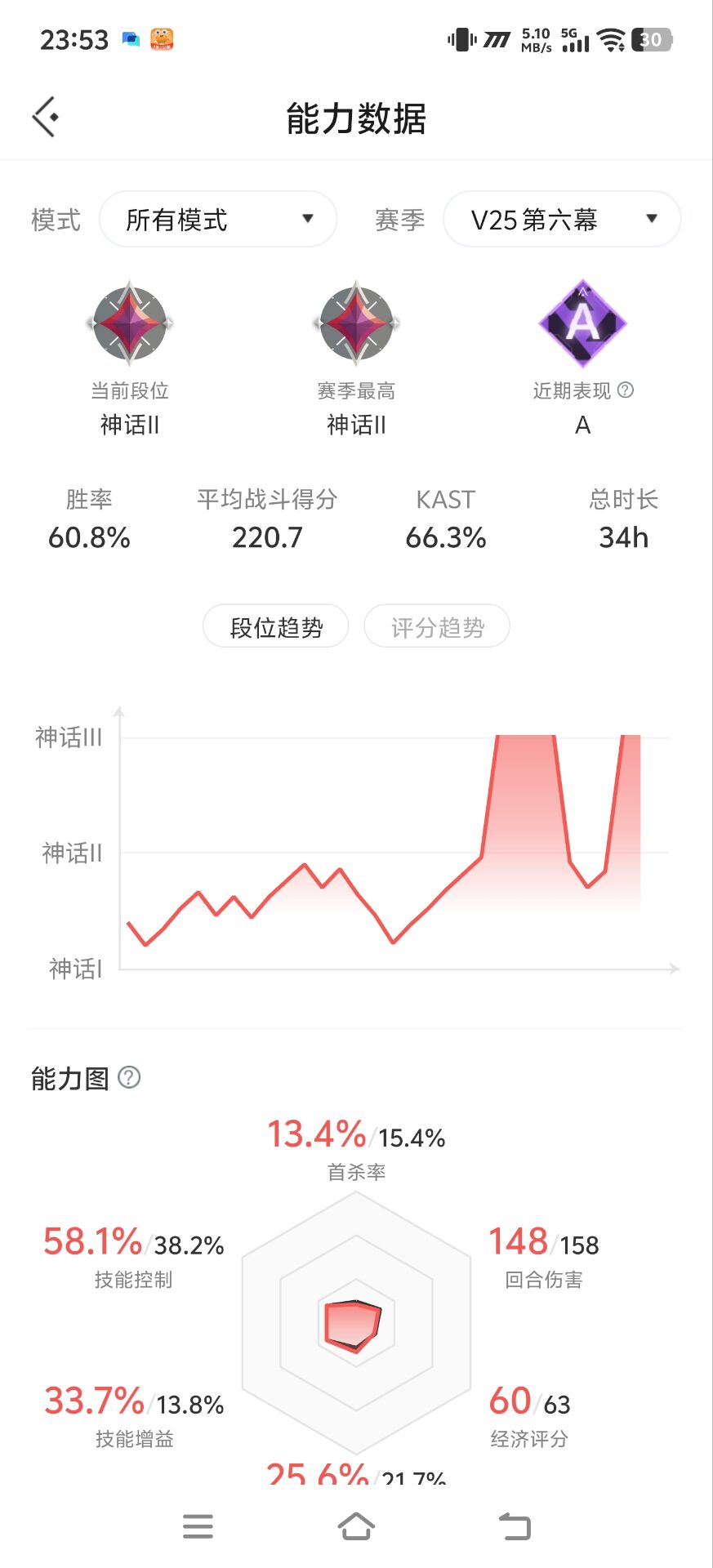 终极*5/卓越*4/皮肤*11/等级*66/段位:青铜
