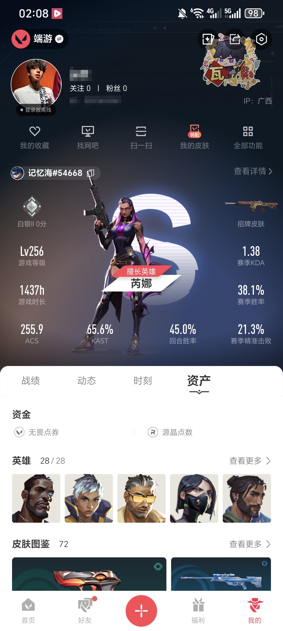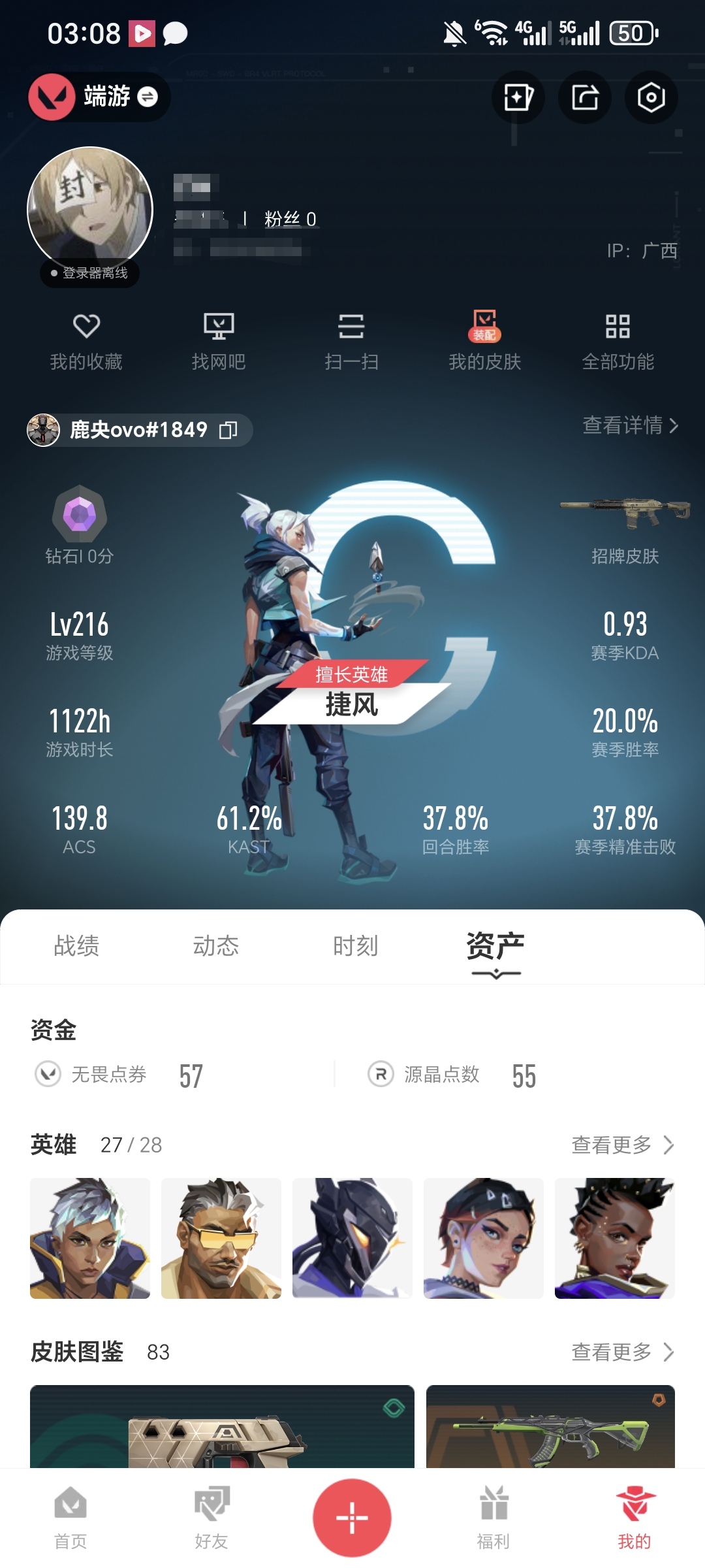 【游戏等级】Lv198 【段位】 钻石I 【R点】1,010 【皮肤总价值】36,530 【英雄数量】28 【皮肤数量】79 【挂饰数量】91 【卡面数量】118 【喷漆数量】113