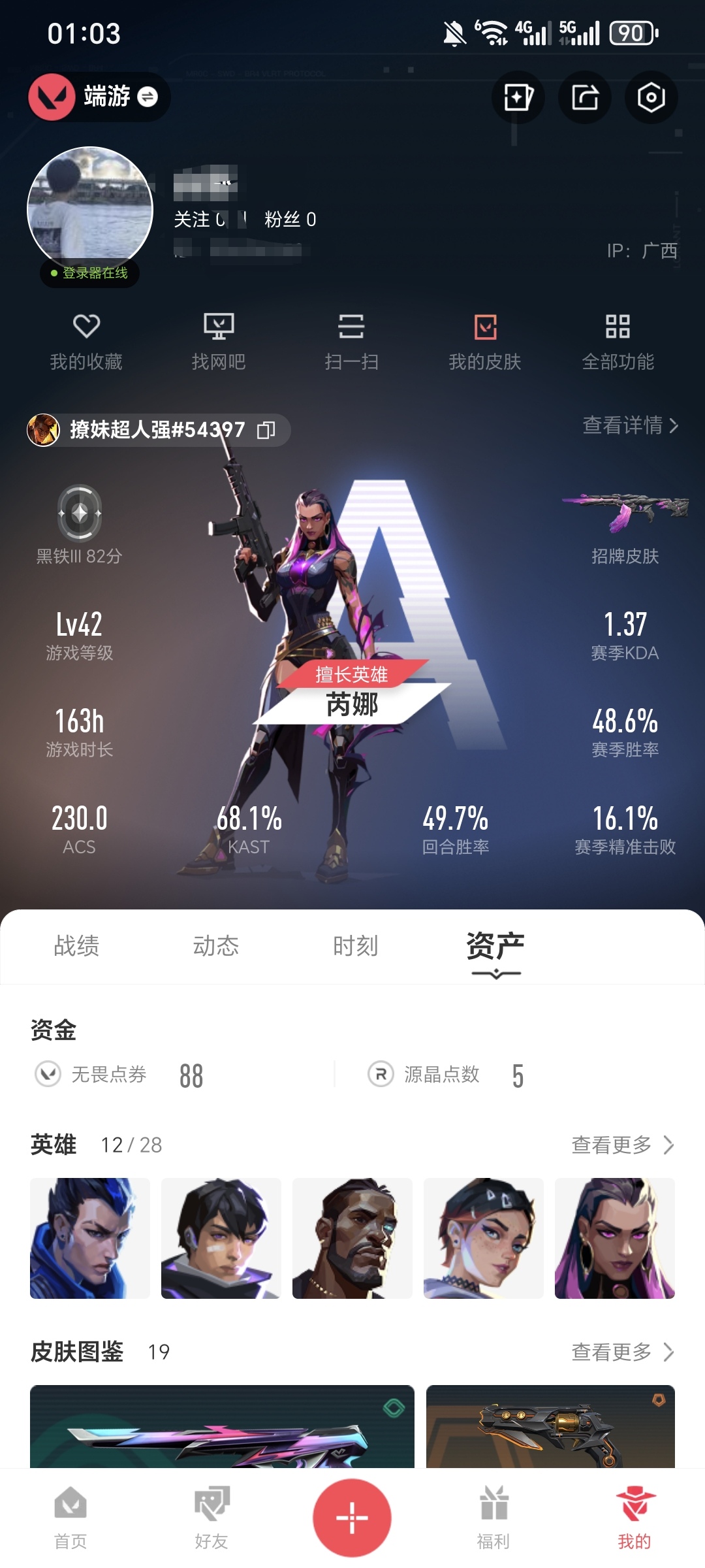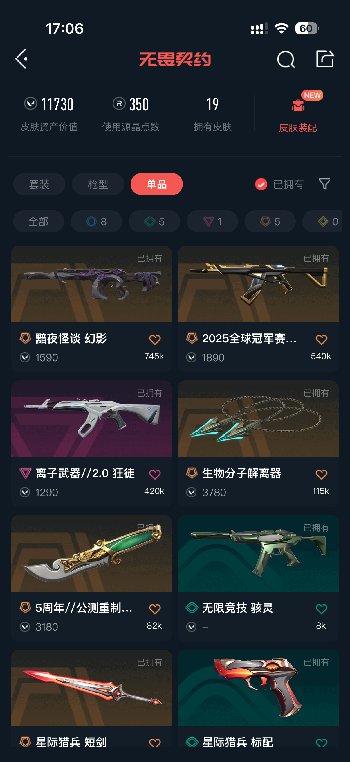 Lv282|钻石III, 刀皮数量11,枪皮数量62(绝版4