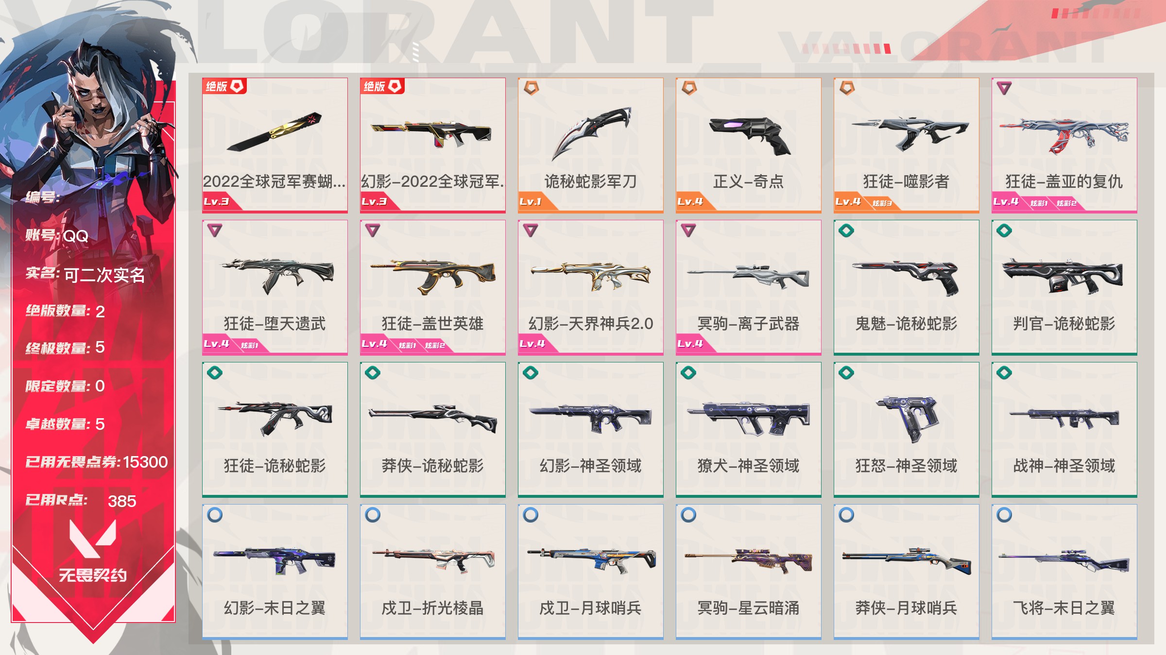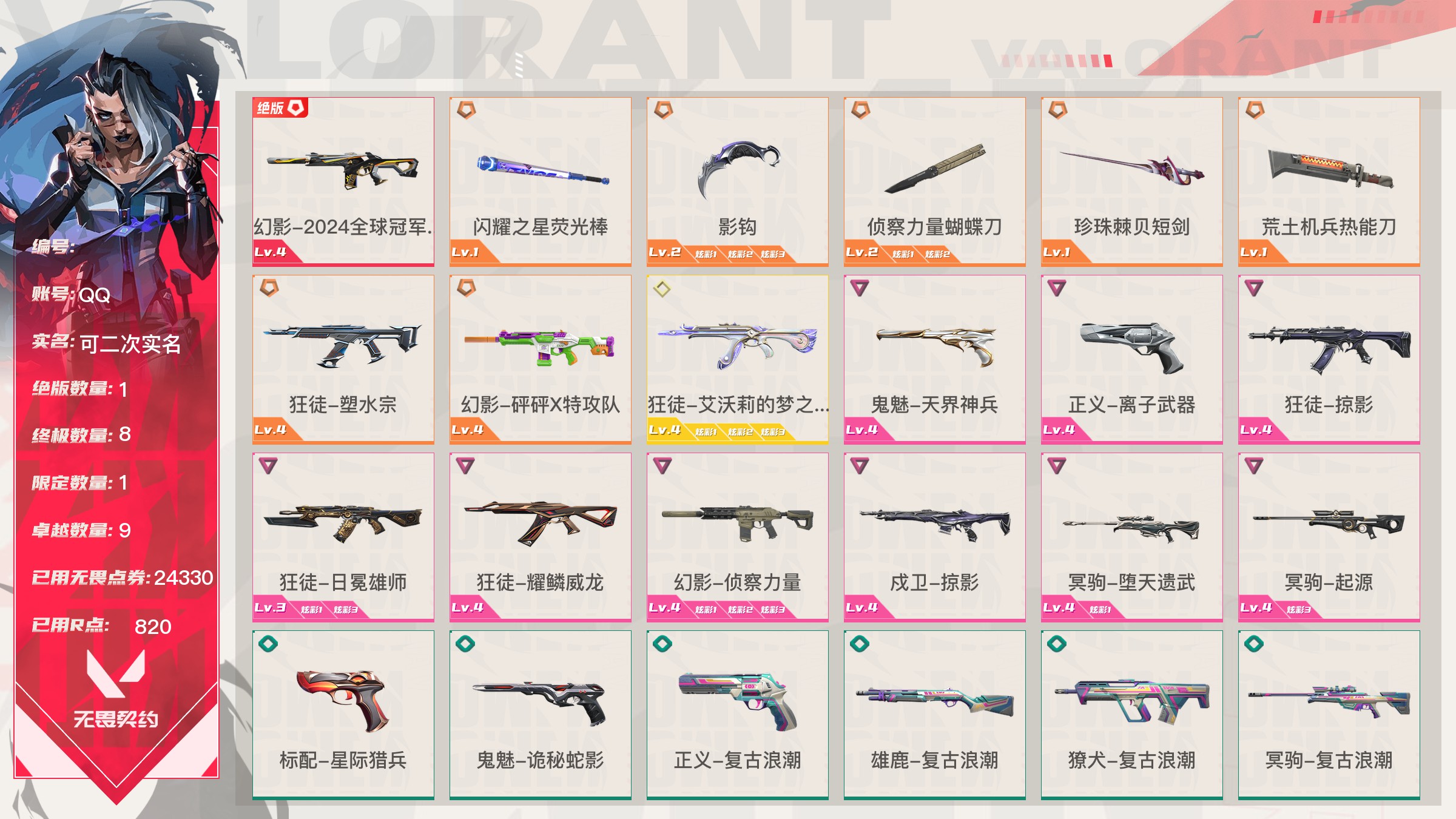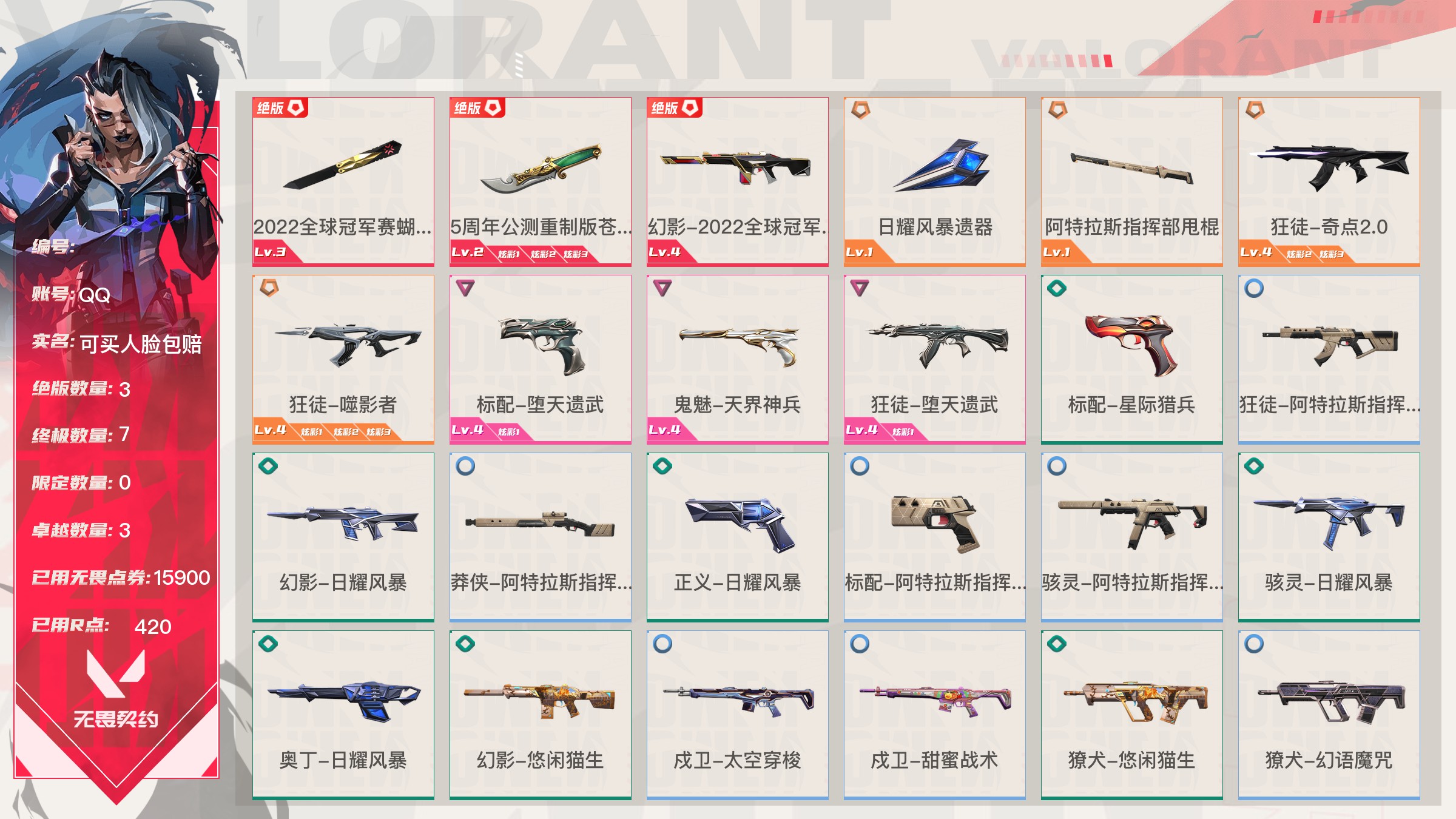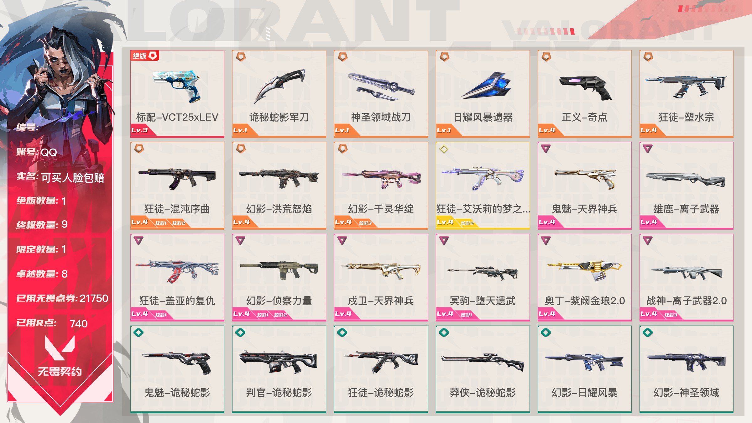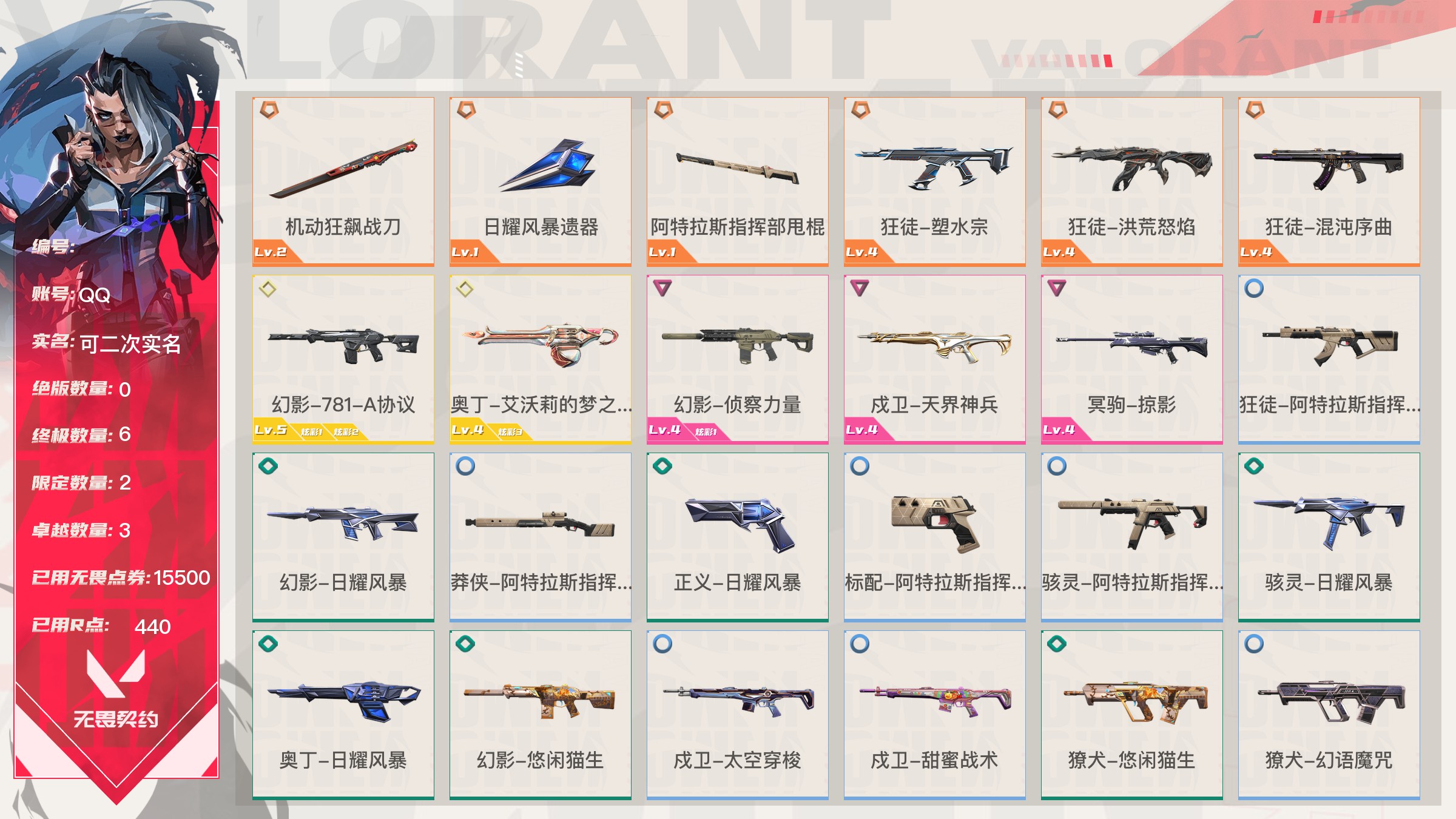 Lv106|未定级, 刀皮数量5,枪皮数量36(绝版2限定10