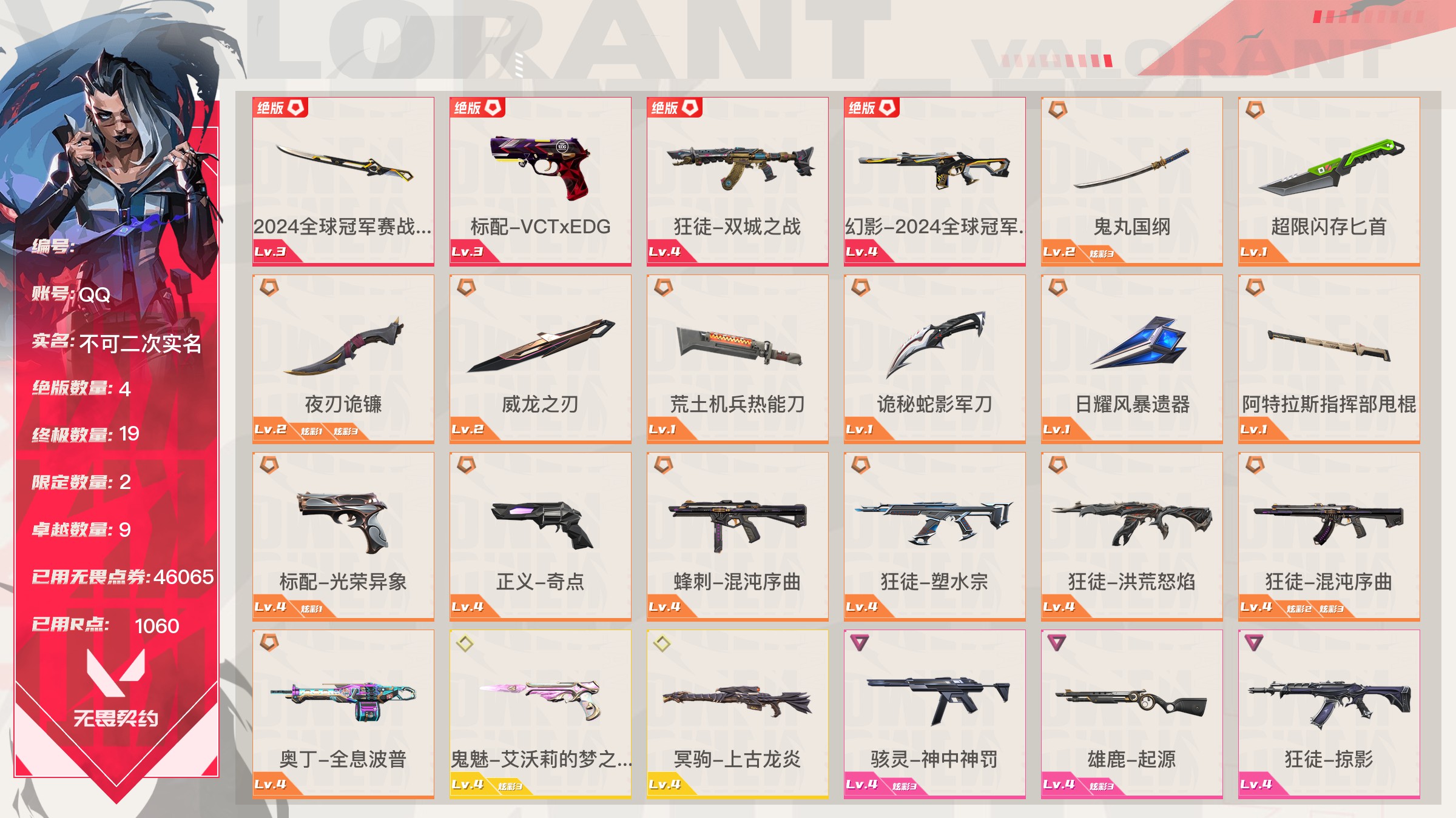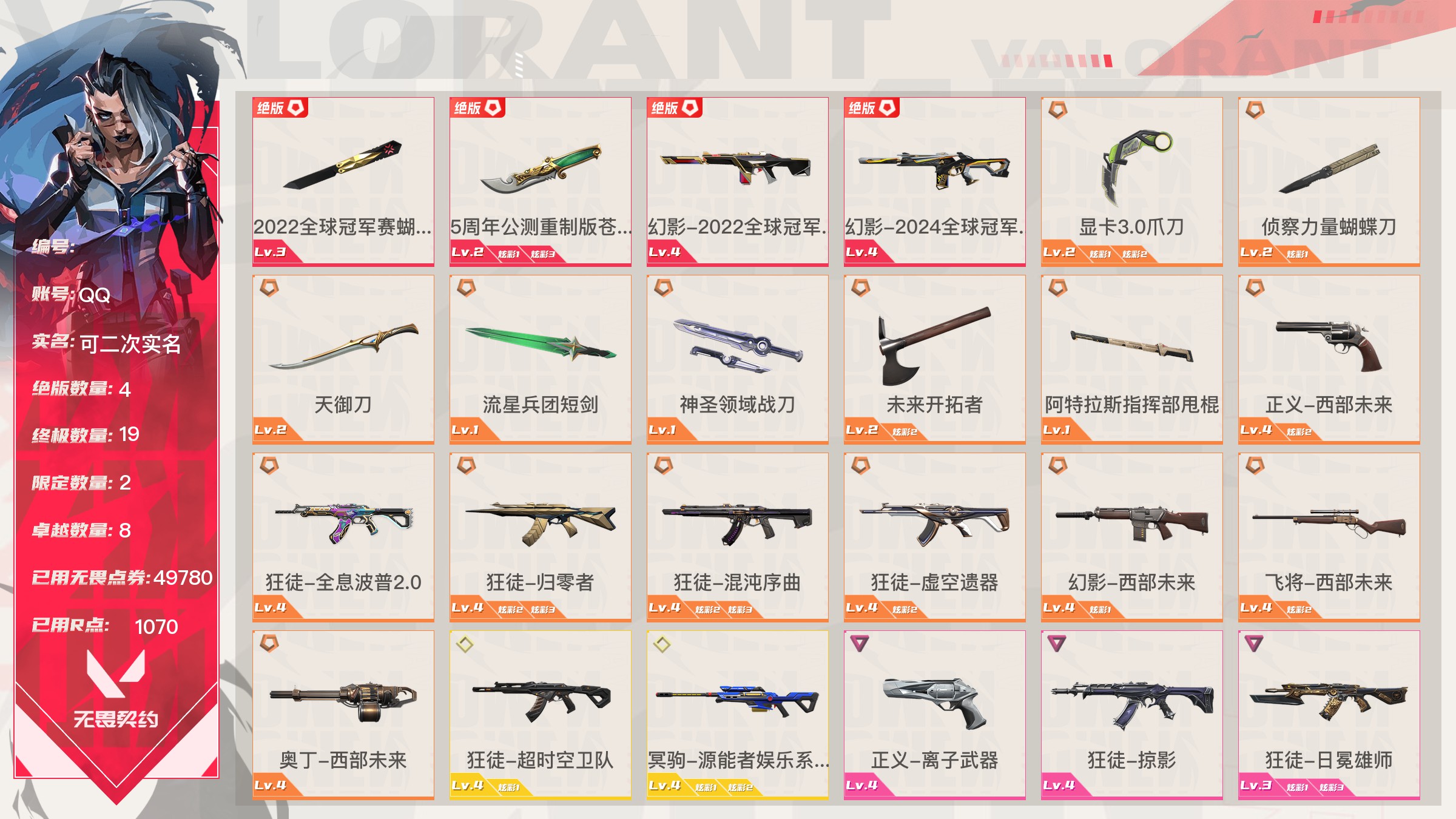 Lv142|未定级, 刀皮数量9,枪皮数量82(绝版4限定19