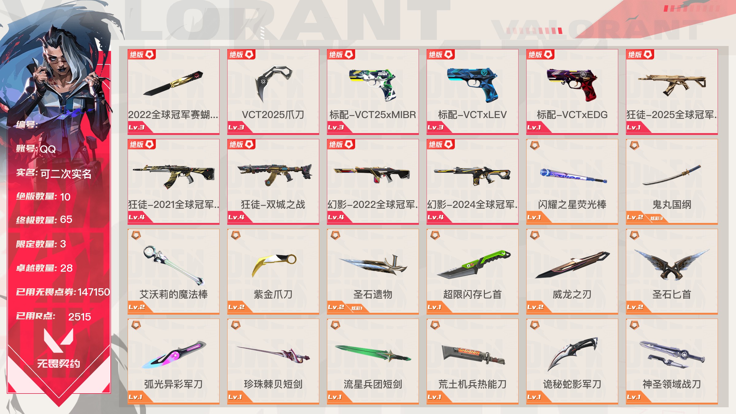 Lv296|未定级, 刀皮数量20,枪皮数量143(绝版4限定