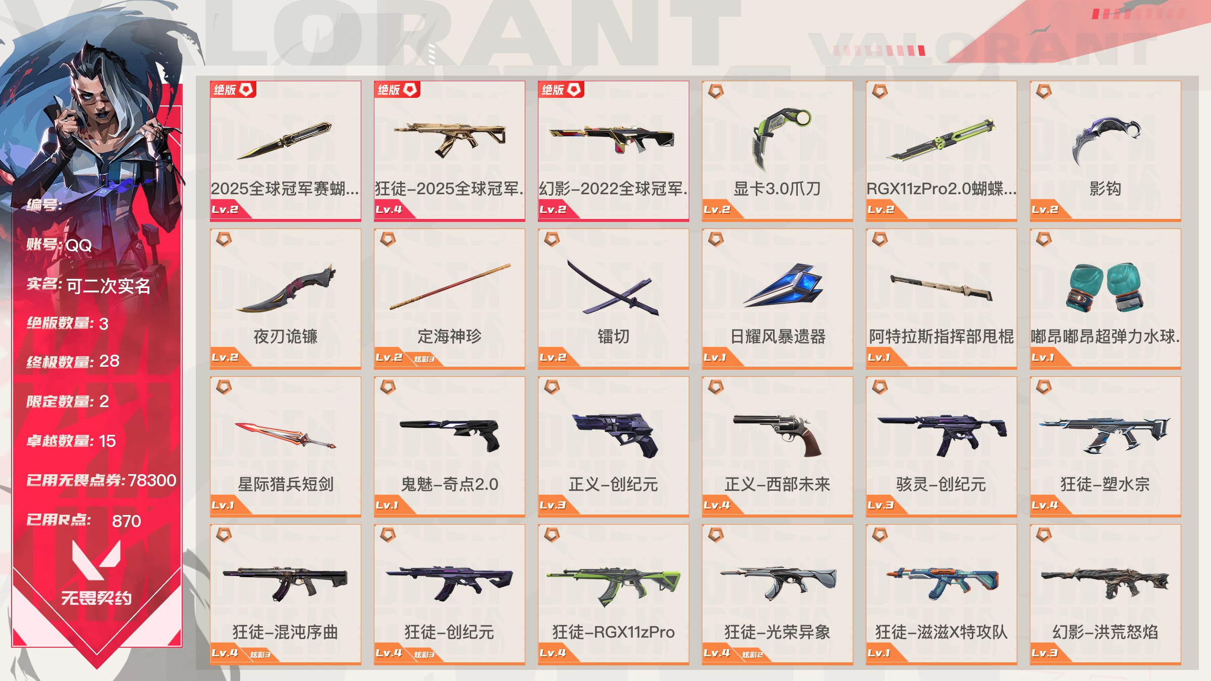 Lv208|超凡II, 刀皮数量26,枪皮数量165(绝版9限