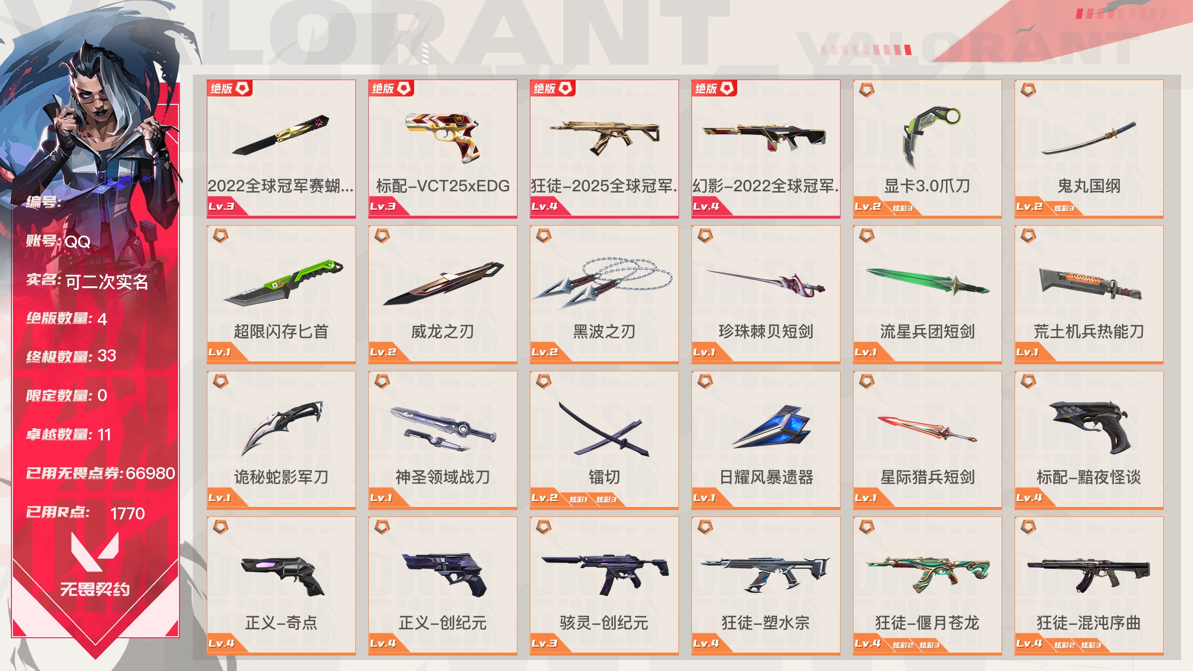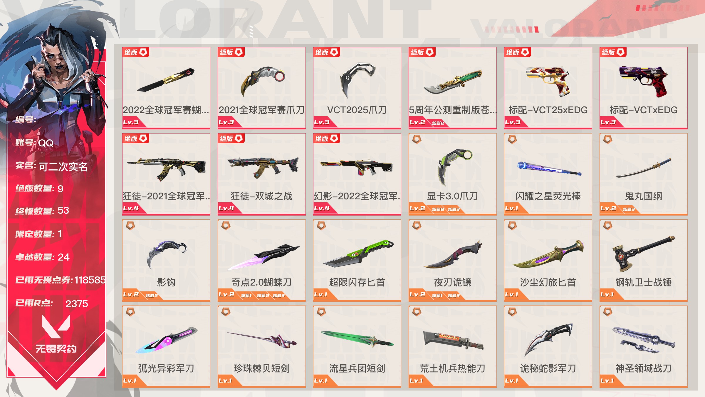 Lv177|超凡I, 刀皮数量21,枪皮数量151(绝版5限定