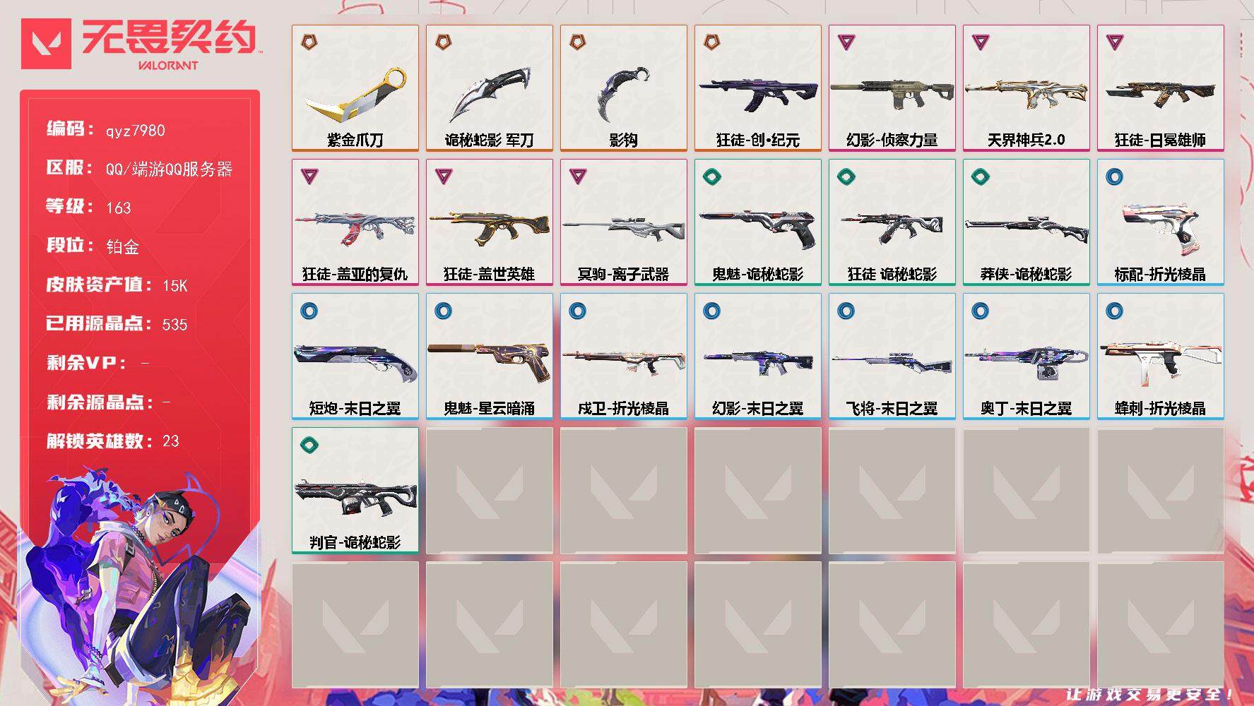Lv198|未定级, 刀皮数量2,枪皮数量27(绝版0限定4终极0卓越5);皮肤资产价值12810,已用R点565