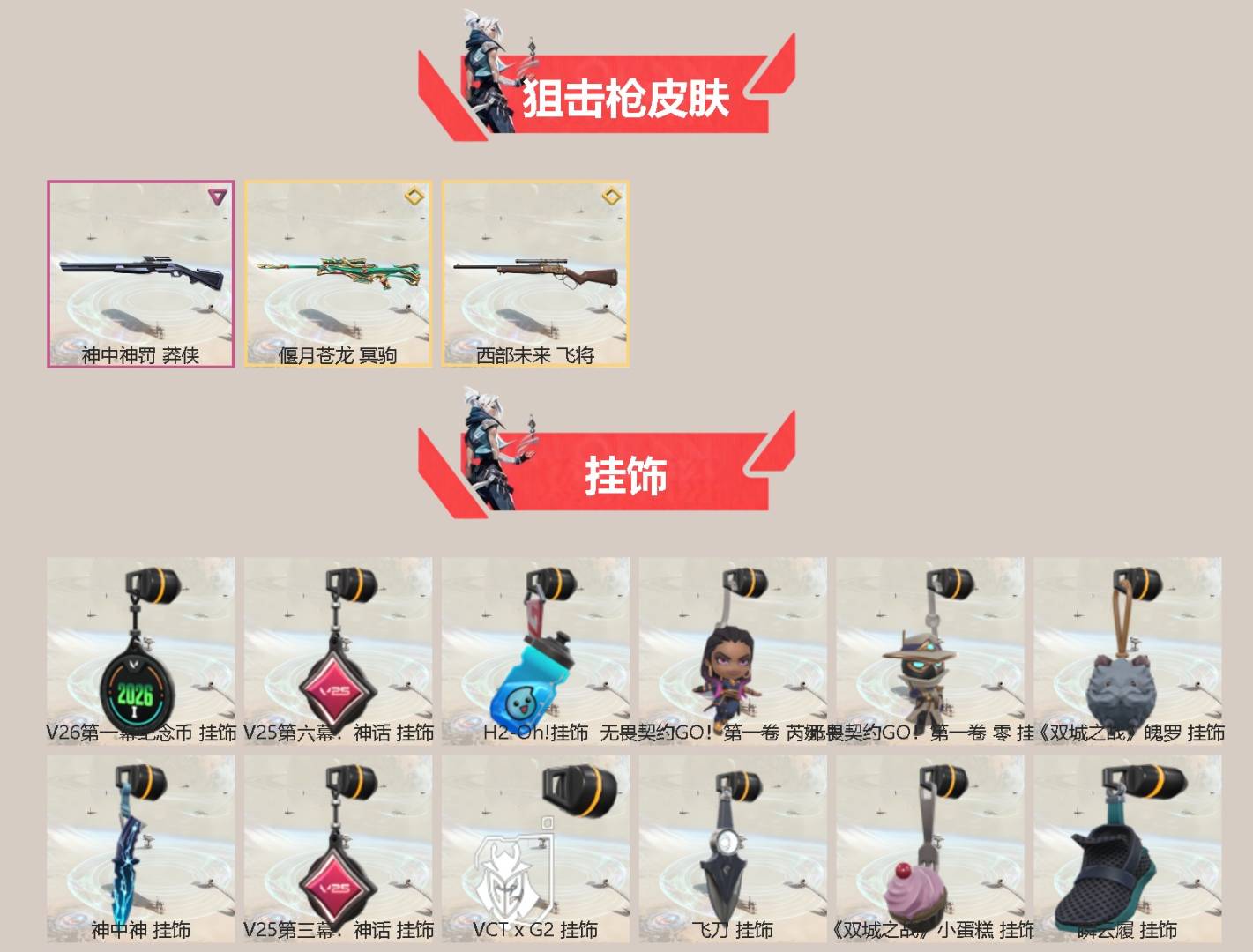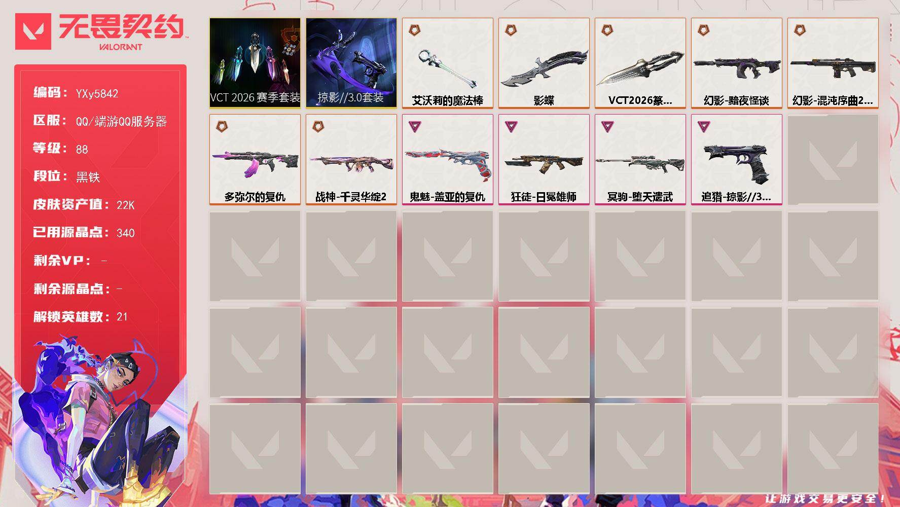 【套装】:VCT 2026 赛季套装,掠影//3.0套装【英雄】:幻棱,炼狱,暮蝶