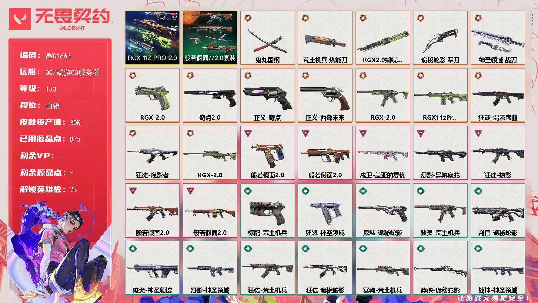 【WWC1663】终极*14/卓越*7/皮肤*57/等级*133/段位:白银/RGX