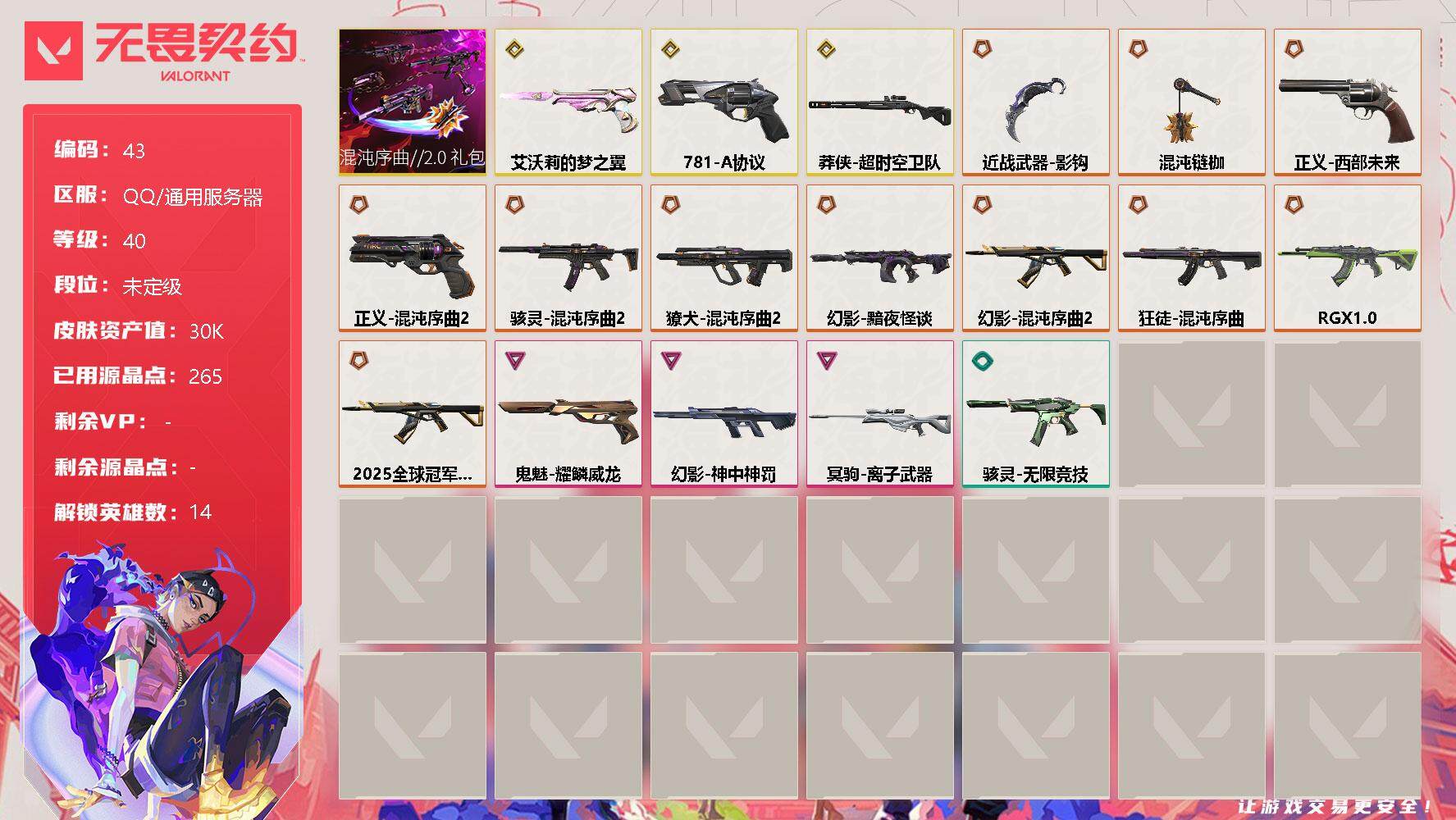u51,资产价值30210,3把黄皮12把橙皮枪混沌序曲全皮,艾沃莉、莽侠、正