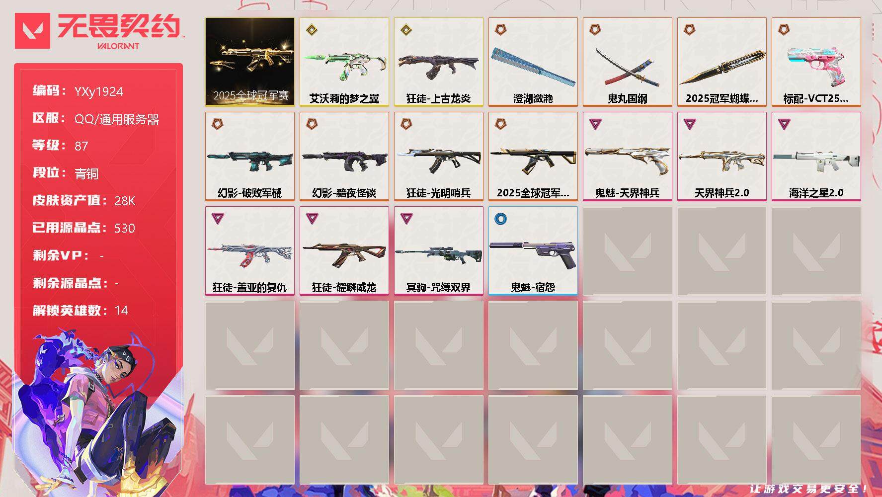 【2.8w库存.25冠军套.太刀.上古龙炎.破败幻影.古神.天界.VCT标配】